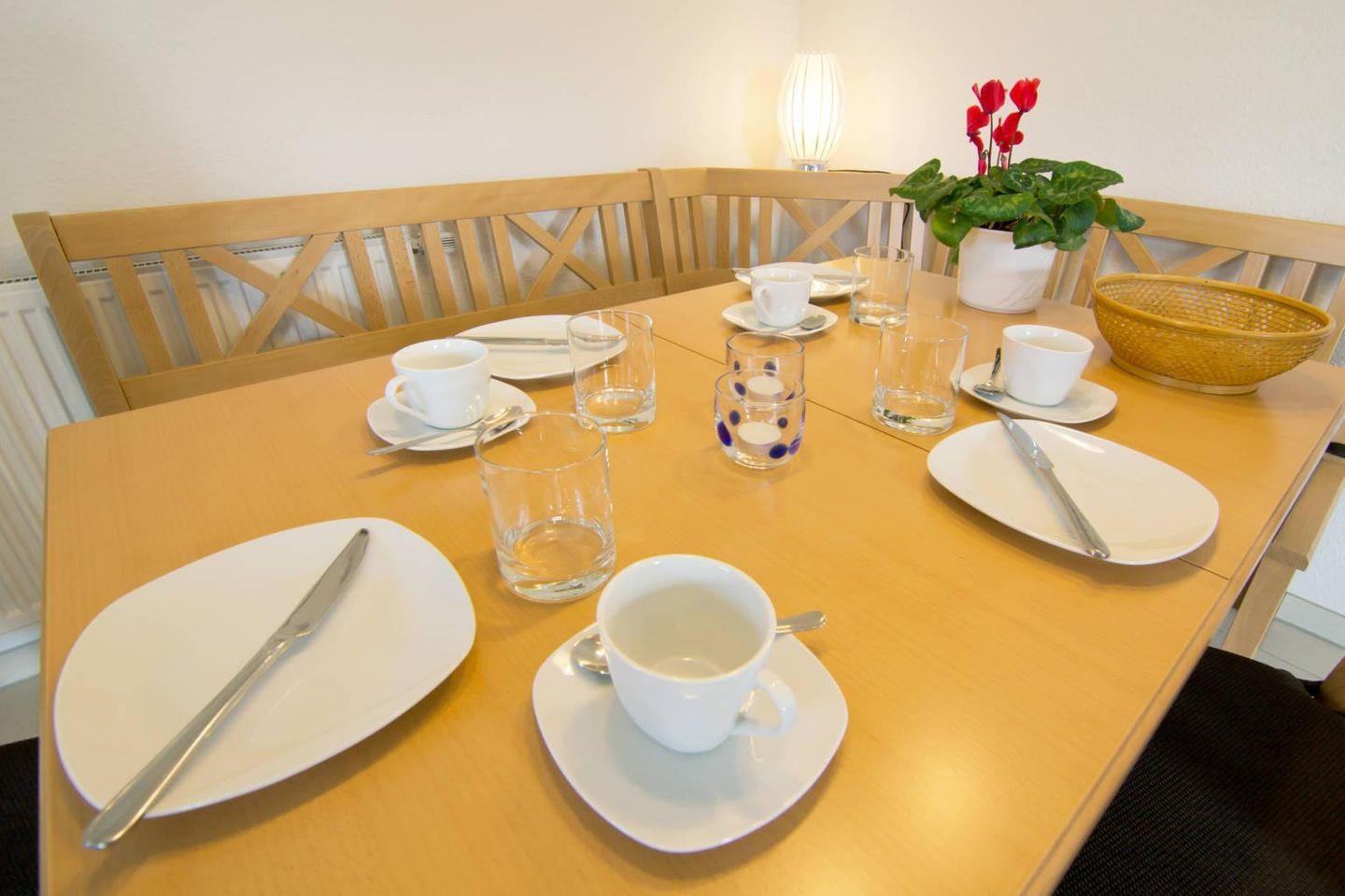 Die Ferienwohnung "Annegret" bietet auf ca. 70 m² Platz für 4 Personen und ein Kleinkind. Vom Balkon genießen Sie den seitlichen Blick auf den Kanal und Dornumersiel. Die moderne Wohnung verfügt über einen großzügigen Wohn- und Essbereich, eine voll ausgestattete Küche, zwei Schlafzimmer, ein Duschbad, ein Gäste-WC und einen gemütlichen Balkon. Ein PKW-Stellplatz und ein Abstellraum für Fahrräder gehören ebenfalls zur Wohnung. Haustiere sind nicht erlaubt.