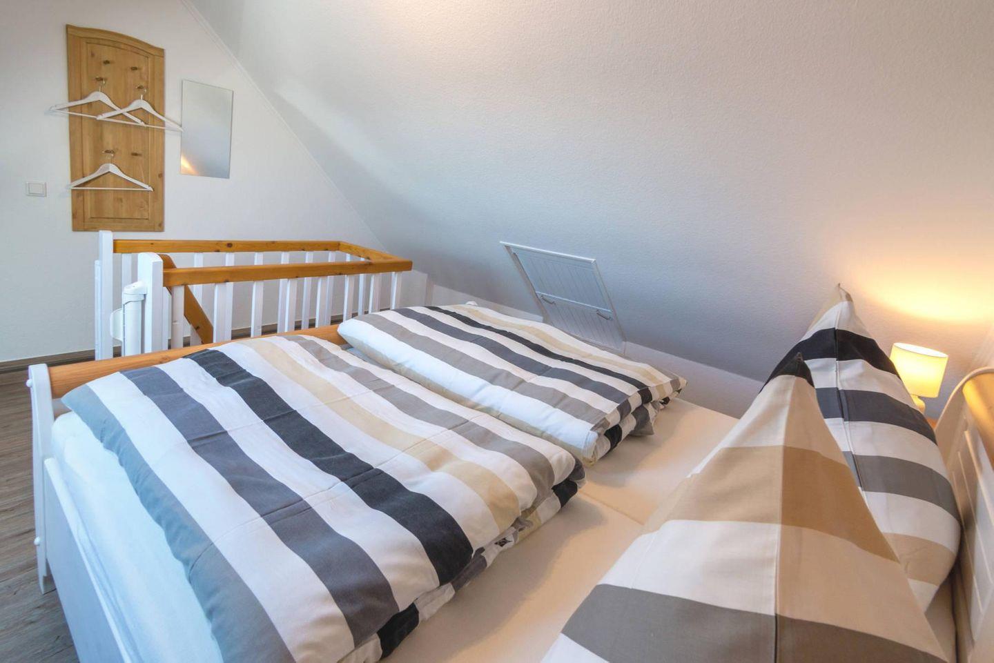 Die charmante Oberwohnung besticht durch ihren modernen Wohn- und Essbereich mit stilvoll eingerichteter, voll ausgestatteter Küche, in der Sie entspannt kochen und gemeinsam genießen können. Das gemütliche Schlafzimmer im ausgebauten Dachgeschoss erreichen Sie über eine platzsparende Raumspartreppe. Das moderne Duschbad mit WC sorgt für zusätzlichen Komfort.