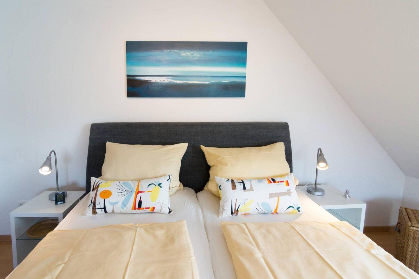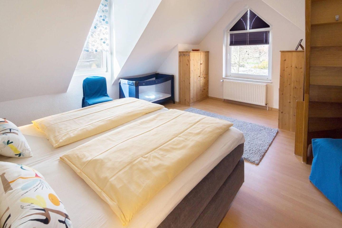 Das Haus erstreckt sich über zwei Etagen mit zwei Schlafzimmern, einem Kinderbett und Hochstuhl – perfekt für Familien oder Paare. Das eingezäunte Grundstück sorgt für Sicherheit, besonders für Kinder. Das allergikerfreundliche Nichtraucherhaus bietet ein angenehmes Raumklima.