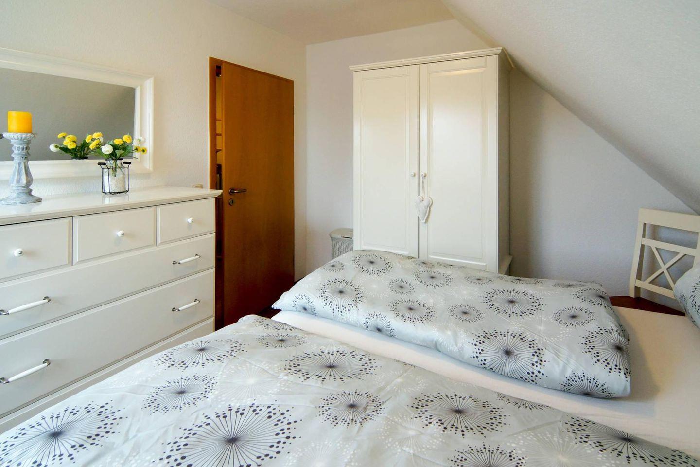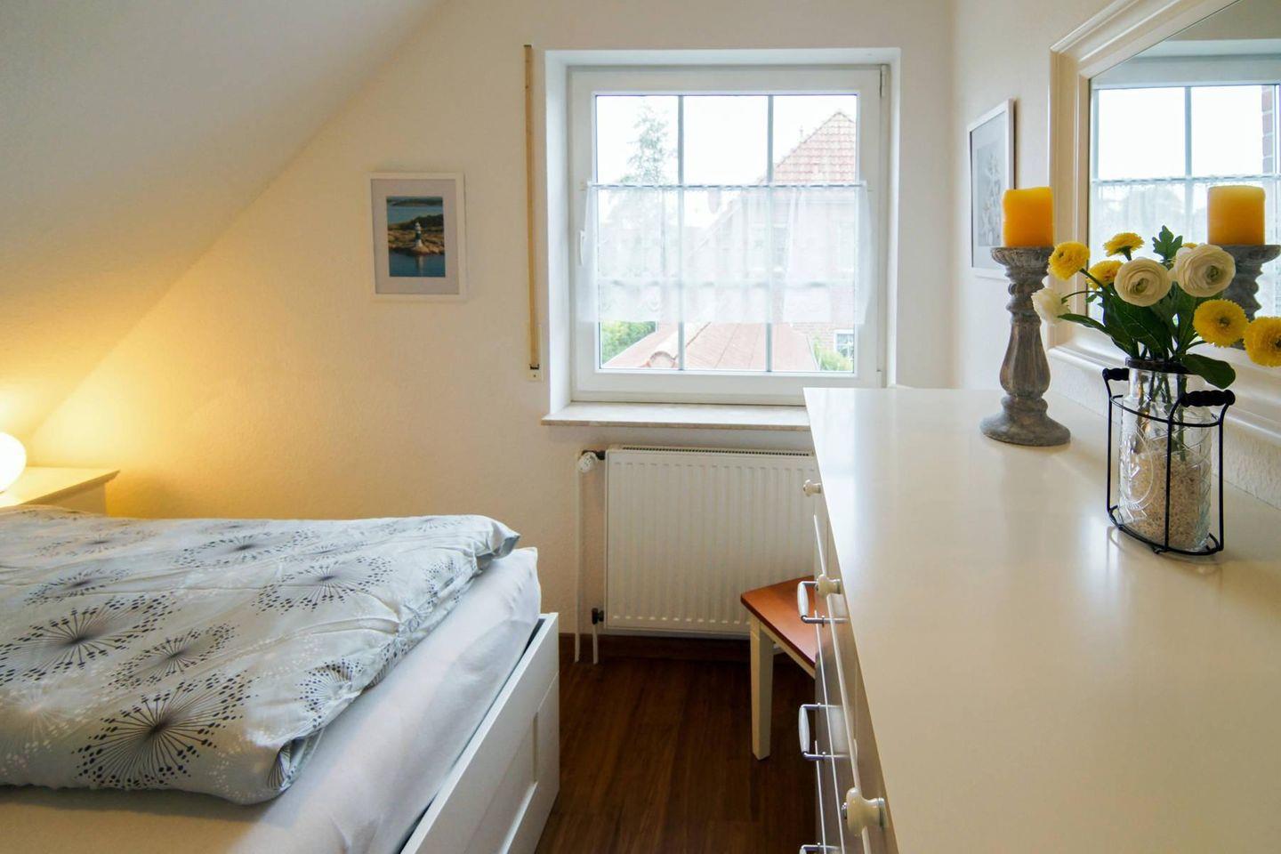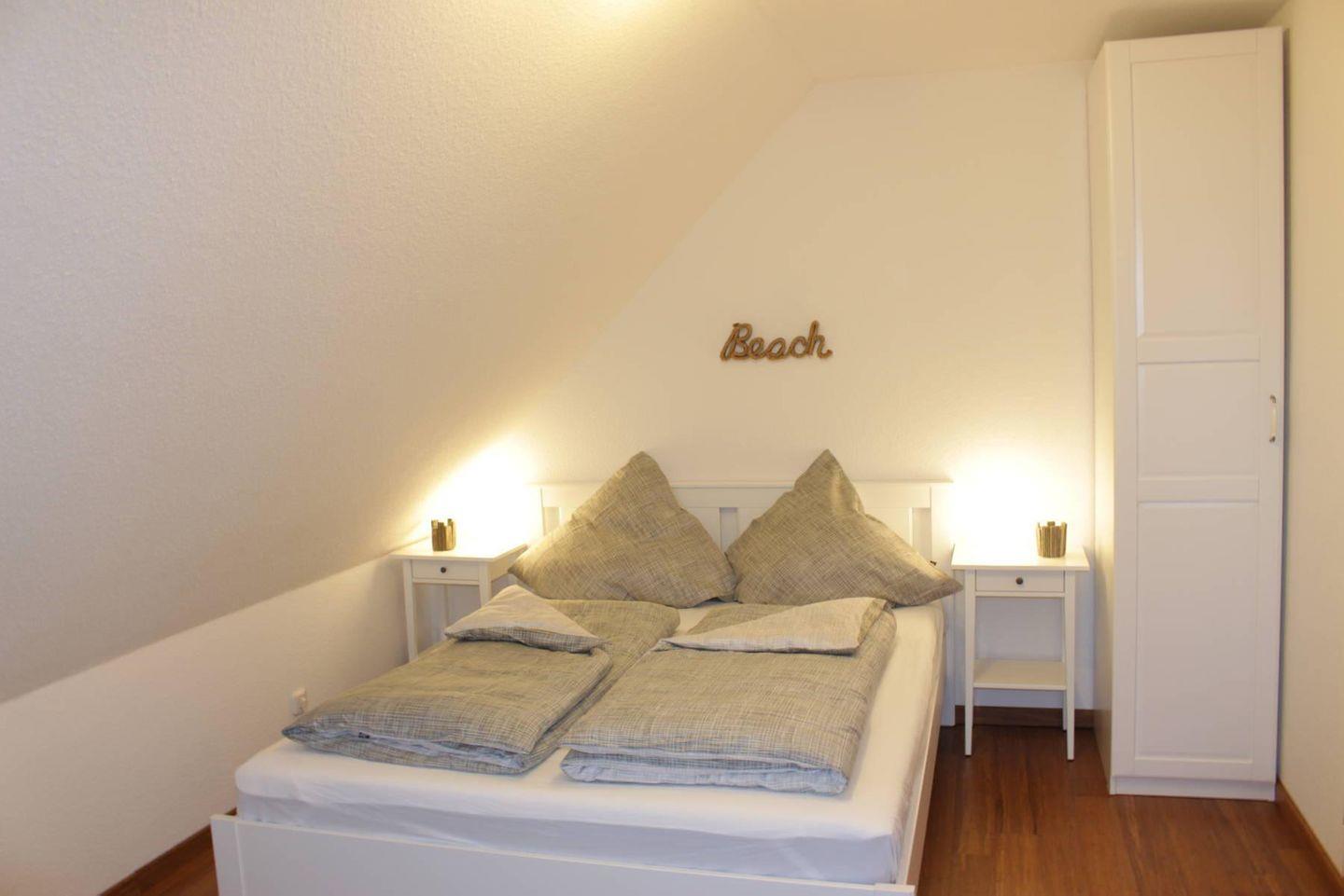 Das Reihenendhaus Strandruhe verfügt im Erdgeschoss über einen warm gestalteten Wohn- und Essbereich, eine separate voll ausgestattete Küche und ein Gäste-WC. Im Obergeschoss befinden sich die zwei Schlafzimmer (mit einem Ehebett, einem Doppelbett 1,60 m und ein Einzelbett) und ein Duschbad mit WC. Zum Haus gehört eine Terrasse mit großem Garten. Ein PKW-Stellplatz befindet sich vor dem Haus. Das WLAN steht Ihnen kostenfrei zur Verfügung.