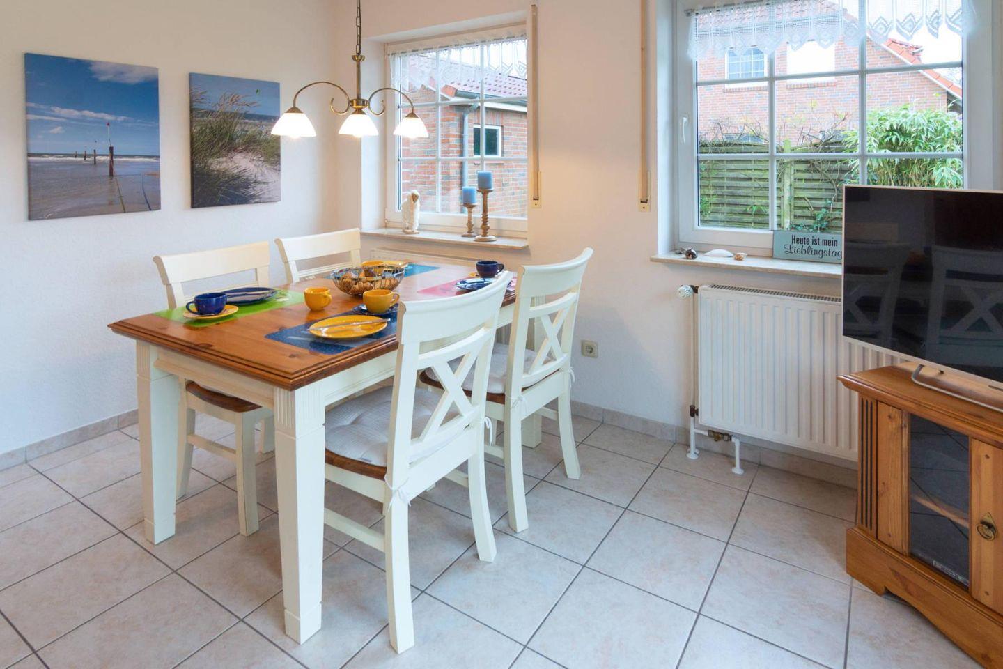 Das moderne Nichtraucher-Ferienhaus befindet sich mitten in Dornumersiel und ist trotzdem ruhig gelegen. Es bietet auf ca. 70 m² Platz für 5 Personen und ein Kleinkind. Zum Haus gehört ein Abstellraum für Fahrräder und ein PKW-Stellplatz. Der großzügige Garten lädt zum Entspannen ein. Haustiere sind hier nicht erlaubt.