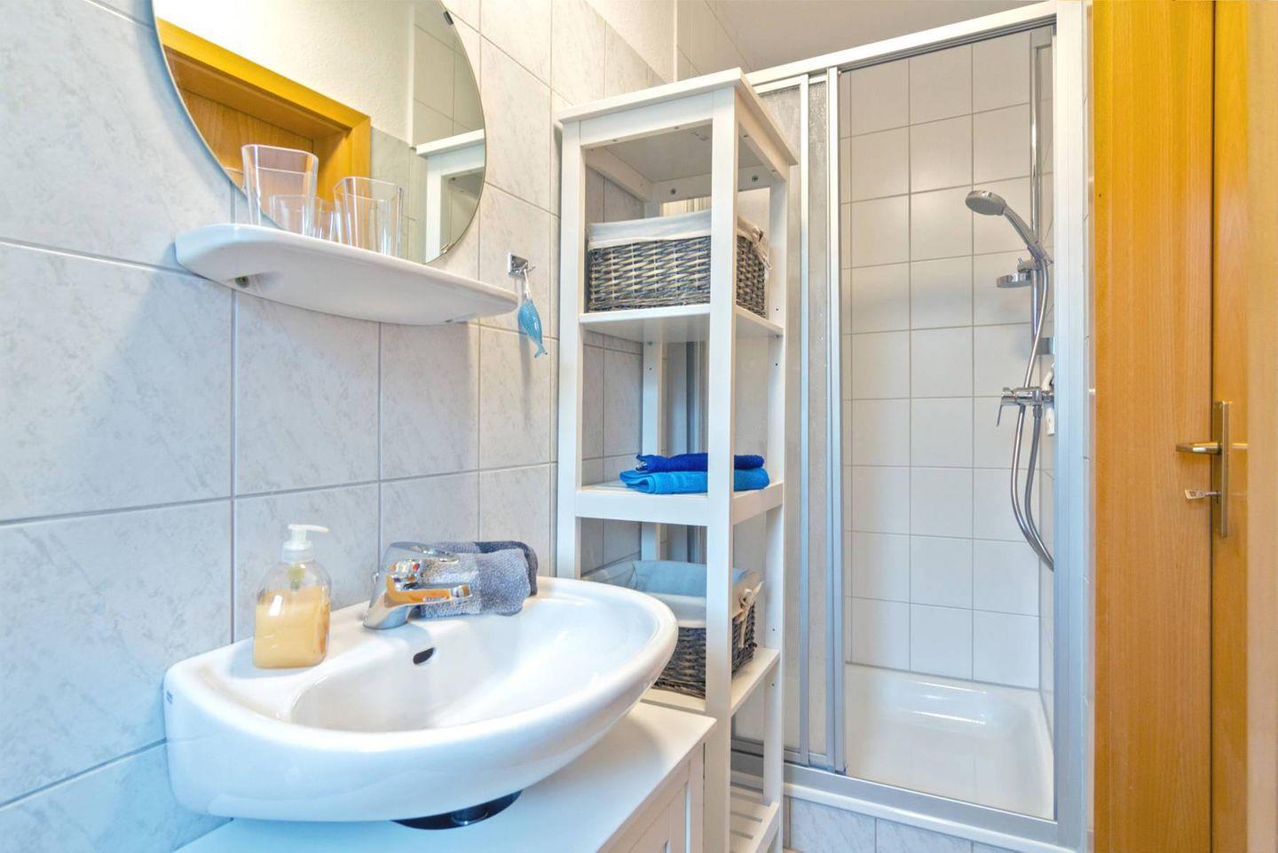 Im Erdgeschoss erwartet Sie ein gemütlicher Wohn- und Essbereich, ideal für entspannte Abende oder gemeinsame Mahlzeiten. Die separate, voll ausgestattete Küche bietet Ihnen alles, was Sie für die Zubereitung Ihrer Lieblingsspeisen benötigen. Ebenfalls im Erdgeschoss befindet sich ein modernes Duschbad mit WC.