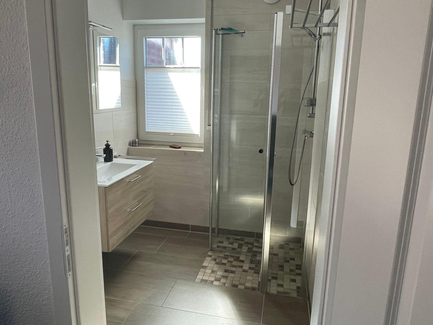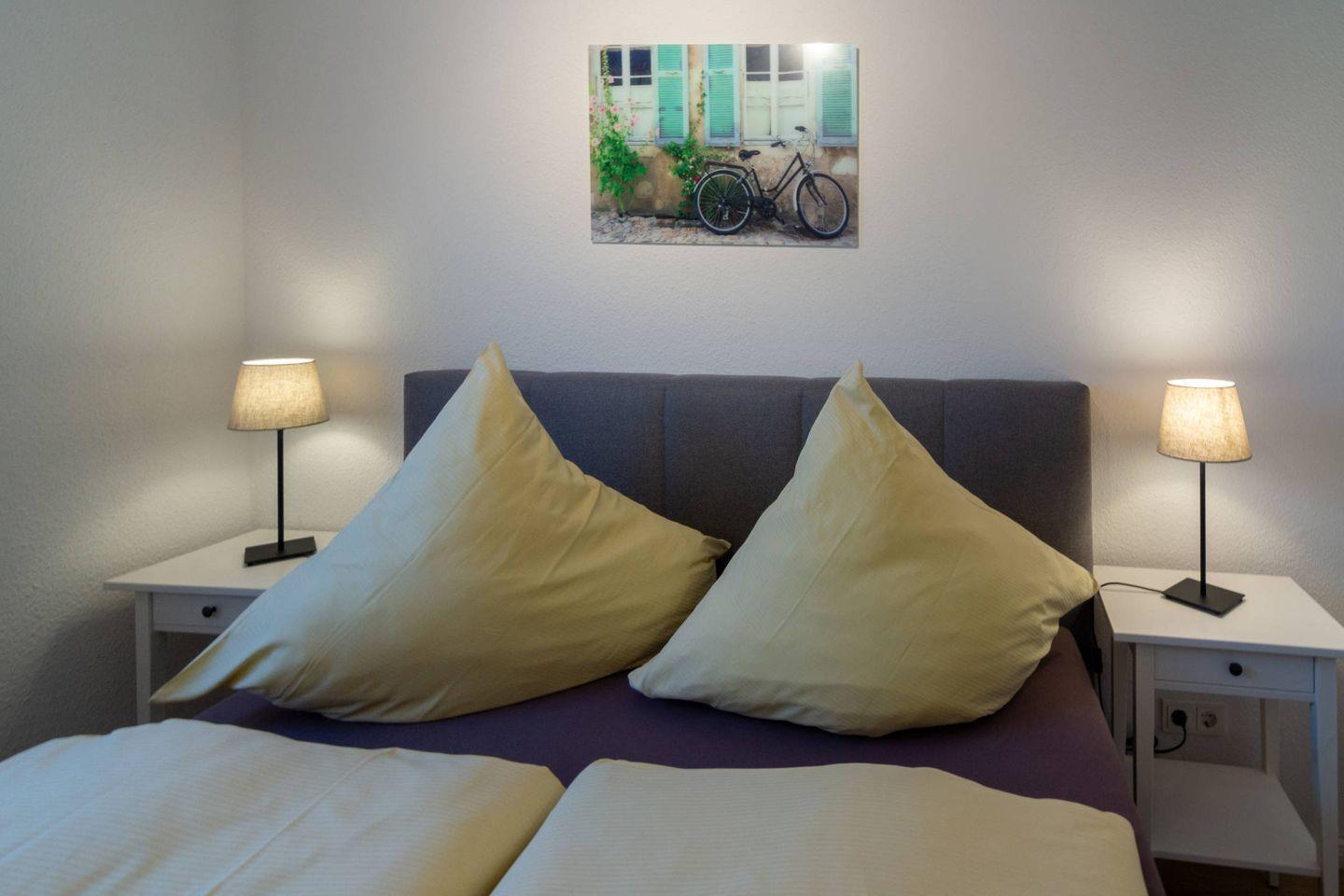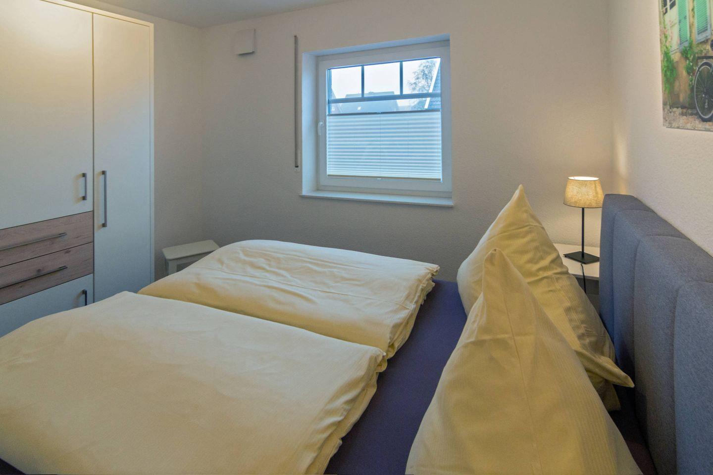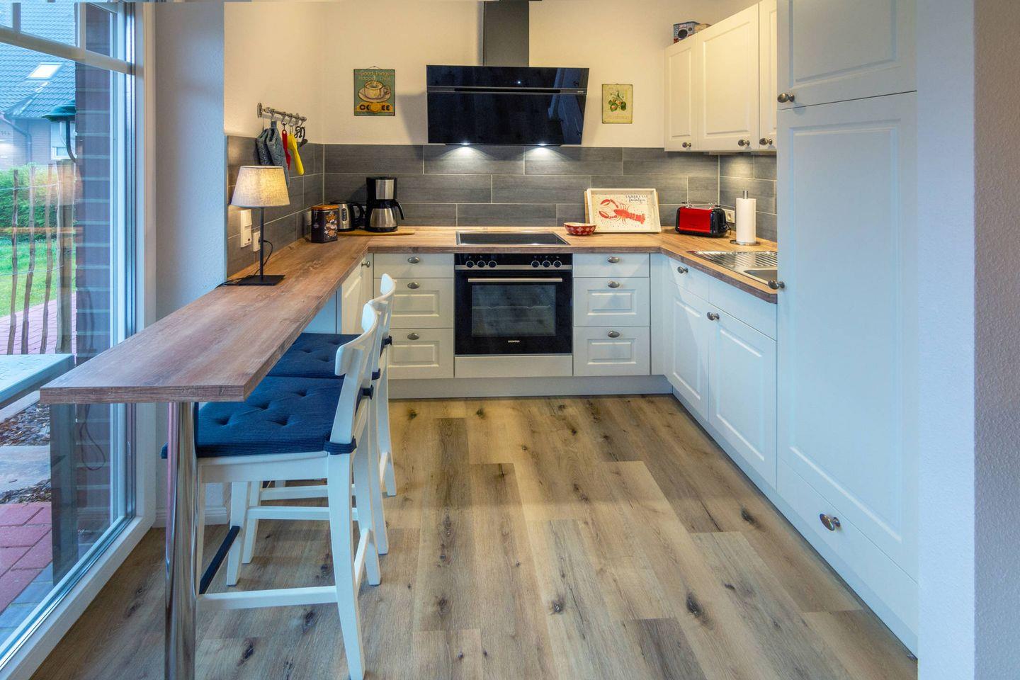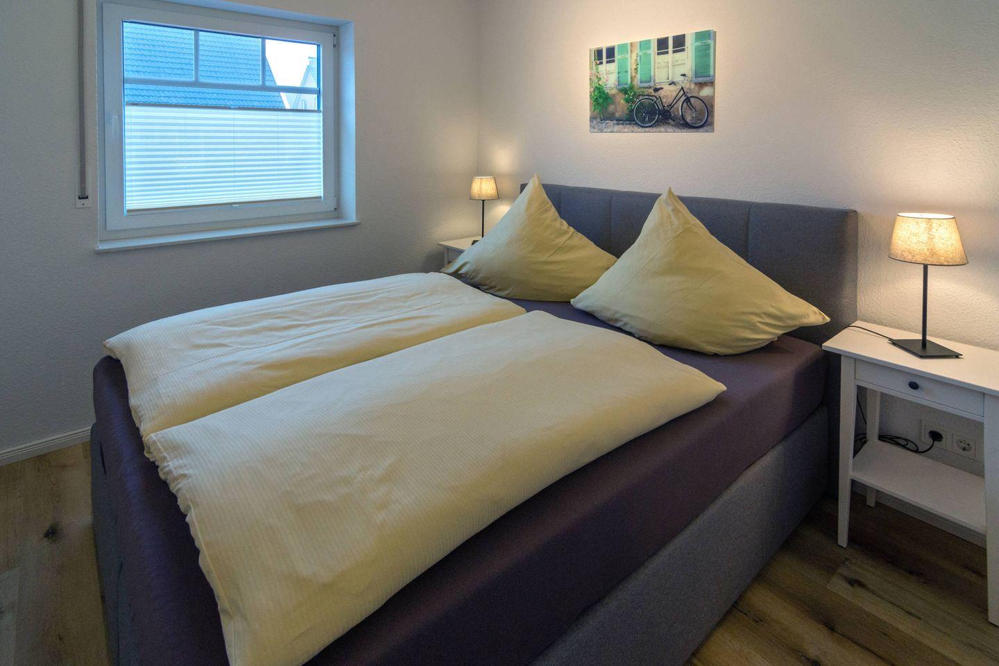 Die Ferienwohnung verfügt über einen großen Wohn- und Essbereich mit angrenzender voll ausgestatteter Küche, zwei Schlafzimmer (eines mit Boxspringbett 1,60 x 2 m, eines mit Etagenbett), ein ebenerdiges Duschbad mit WC und einen Abstellraum für Ihre Fahrräder. Zur Wohnung gehört eine gemütliche Terrasse. Vor dem Haus befindet Ihr PKW-Stellplatz. Das WLAN steht Ihnen kostenfrei zur Verfügung. Obwohl Haustiere nicht erlaubt sind, ist die Wohnung nicht geeignet für Allergiker.