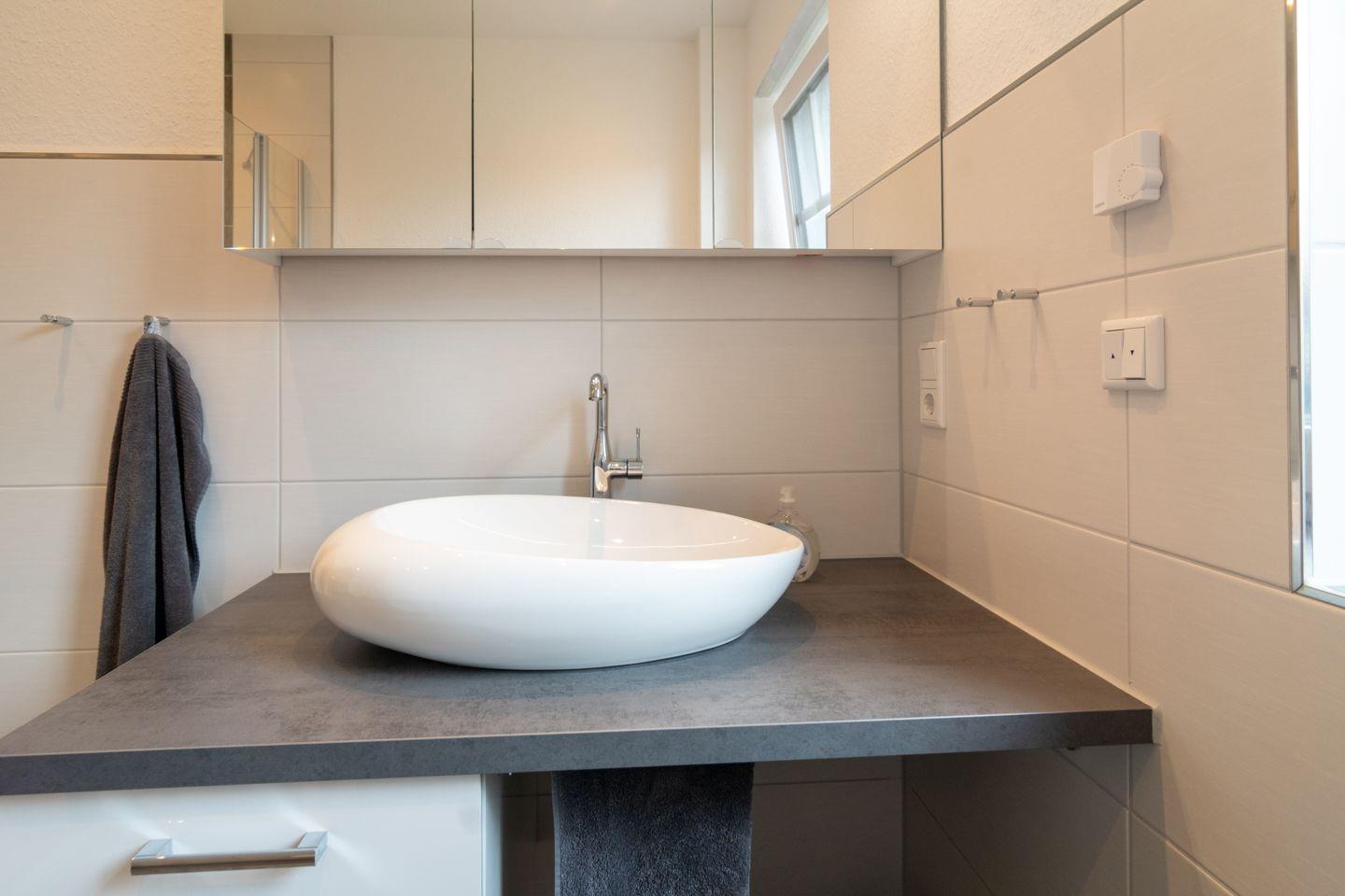 Das helle Duschbad verfügt über eine bodengleiche Dusche. Eine eigene Waschmaschine steht ebenfalls bereit. Fahrräder können im Abstellraum untergebracht werden, ein PKW-Stellplatz ist direkt vor der Tür.