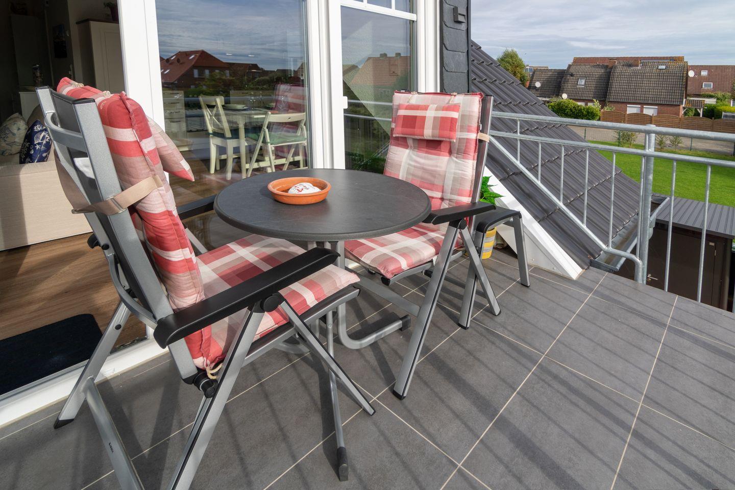 Die Unterkunft befindet sich im ersten Stock und bietet Ihnen die Möglichkeit, die frische Luft auf einem eigenen Balkon zu genießen. Hier können Sie den Tag entspannt bei einem Frühstück im Freien beginnen oder den Abend bei einem Glas Wein ausklingen lassen. Der Wohnbereich ist mit einem Sofa und einem Esstisch ausgestattet, der genügend Platz für gesellige Runden bietet. Für die Unterhaltung sorgt ein modernes Fernsehzimmer mit TV-System, einem Satellitenanschluss sowie einer HiFi-Anlage, die einen CD- und Radioplayer integriert hat.