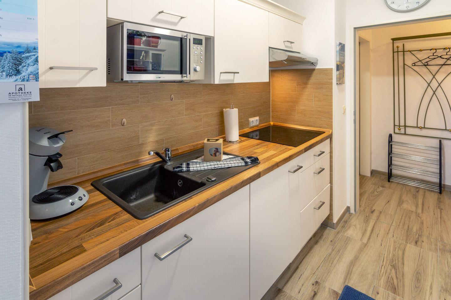 Die moderne Küche ist mit allem ausgestattet, was Sie benötigen: Ceranfeld, Mikrowelle, Kühlschrank, Kaffeemaschine, Toaster und weitere praktische Utensilien ermöglichen es Ihnen, köstliche Gerichte zuzubereiten. Kostenloses WLAN sorgt dafür, dass Sie auch im Urlaub verbunden bleiben.