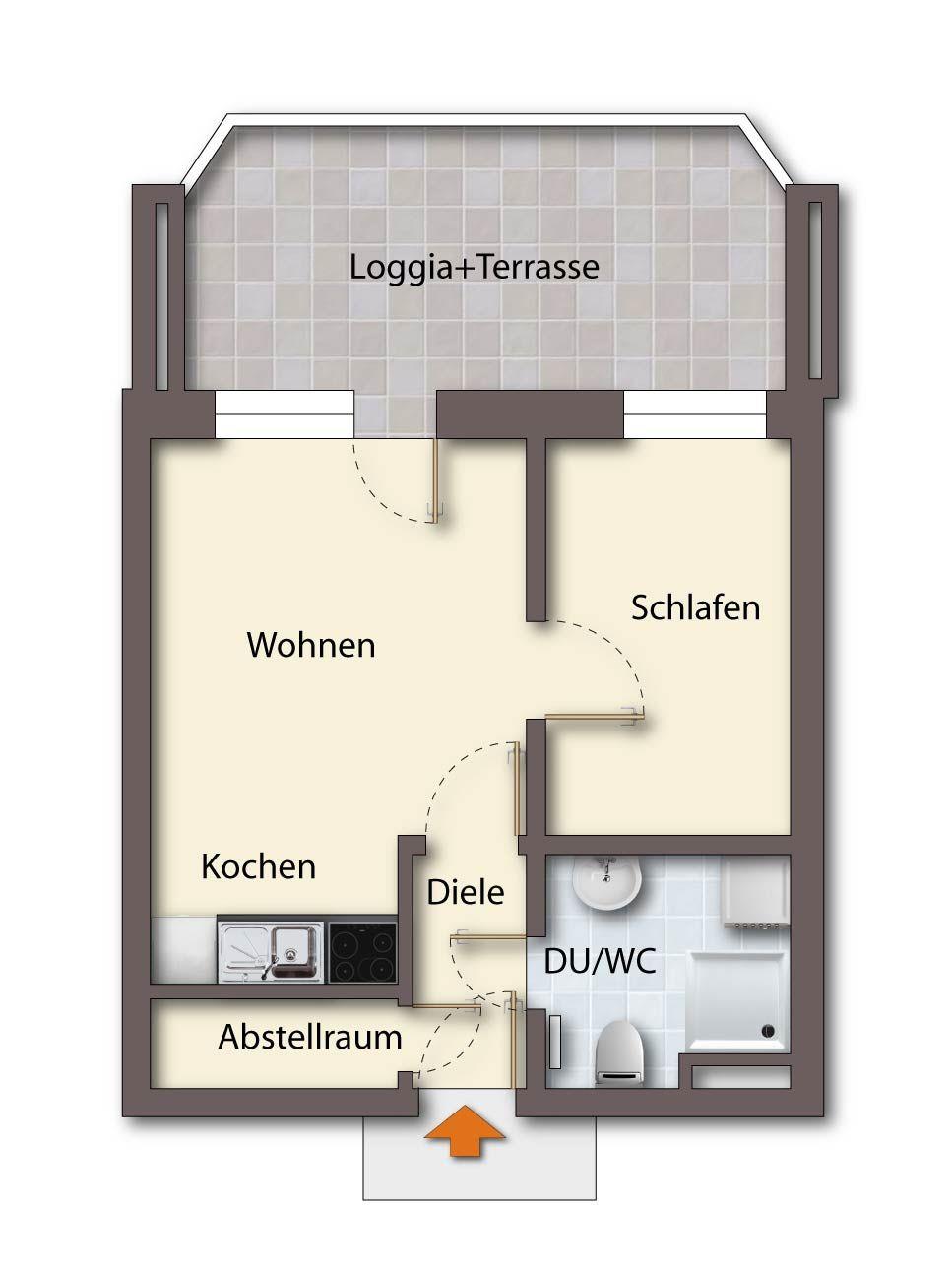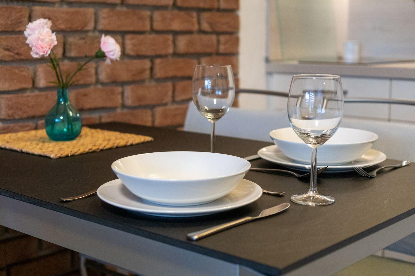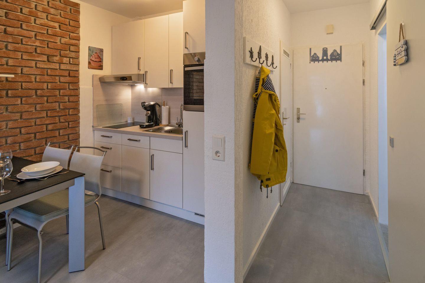 Die moderne Ferienwohnung mit Terrasse bietet auf ca. 35 m² Platz für 2-3 Personen. Haustiere sind hier nicht erlaubt.