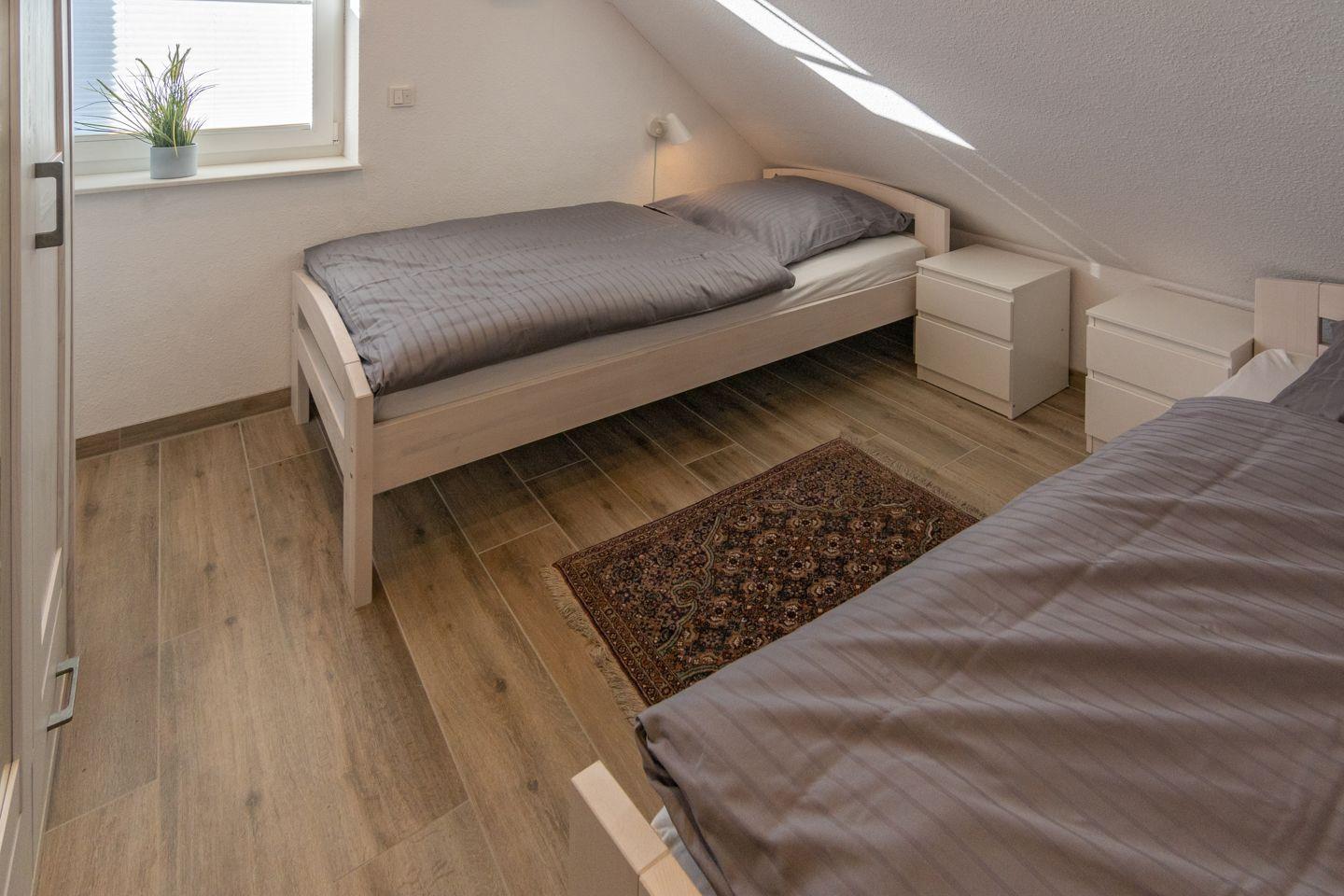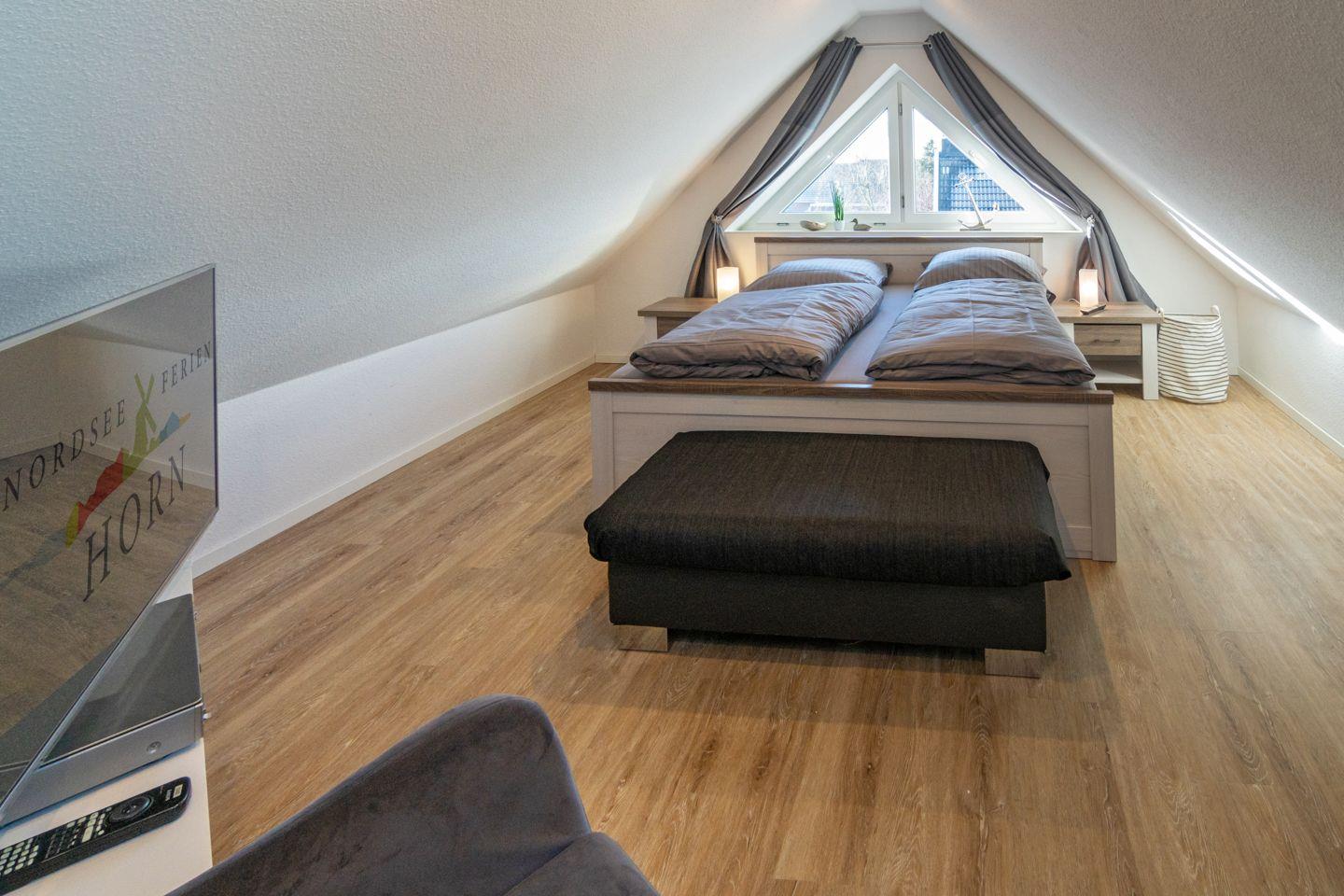 Die Ferienwohnung Willi Wattwurm verfügt im Obergeschoss über einen gemütlichen Wohn- und Essbereich mit angrenzender voll ausgestatteter Küche, ein Schlafzimmer mit zwei Einzelbetten und ein ebenerdiges Duschbad mit WC. Im ausgebauten Dachgeschoß befindet sich ein weiteres Schlafzimmer mit einem Doppelbett. Zur Wohnung gehört ein Balkon. Vor dem Haus befindet sich Ihr PKW-Stellplatz. Das WLAN steht Ihnen kostenfrei zur Verfügung.