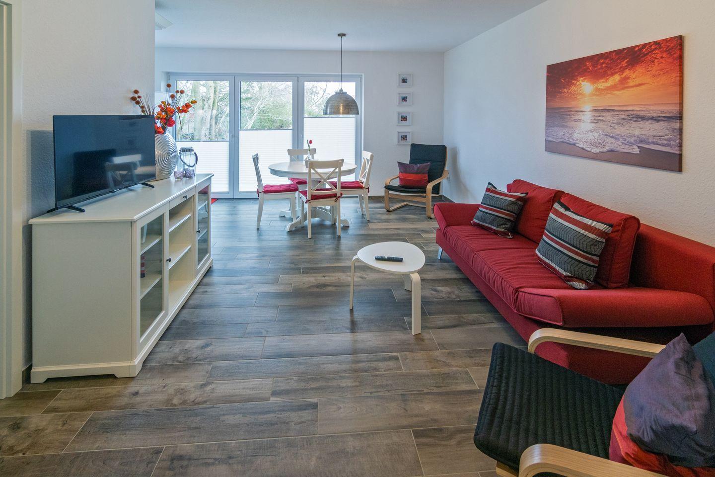 Die Ferienwohnung „Backbord“ im Küstenbadeort Dornumersiel ist der ideale Rückzugsort für Familien, die Erholung und Komfort suchen. Die Mitte 2022 fertiggestellte Wohnung befindet sich im Erdgeschoss eines modernen 6-Parteien-Hauses und bietet auf ca. 55 m² ausreichend Platz für bis zu vier Personen. Die zentrale, aber dennoch ruhige Lage ermöglicht es Ihnen, sowohl den Strand als auch die örtlichen Geschäfte bequem zu erreichen.