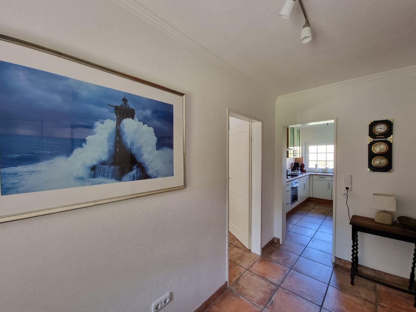 Die voll ausgestattete Küche lässt keine Wünsche offen. Neben Spülmaschine, Kühlschrank mit Gefrierfach, Backofen mit Cerankochfeld, Kaffeemaschine und Pad-Maschine stehen Ihnen zahlreiche weitere Küchenutensilien sowie gängige Gewürze zur Verfügung. Damit sind sowohl gemütliche Frühstücke als auch gemeinsame Kochabende problemlos möglich.