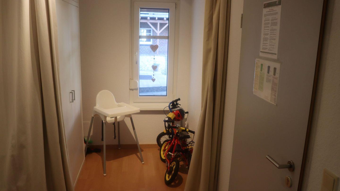 Ein Kinderzimmer mit Hochbett und Einzelbett