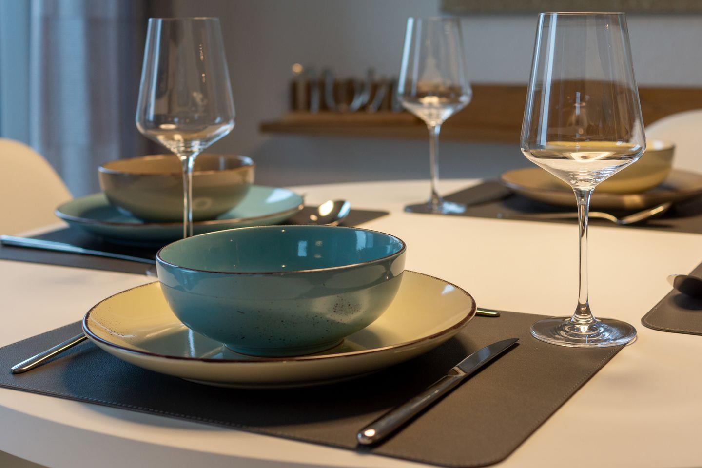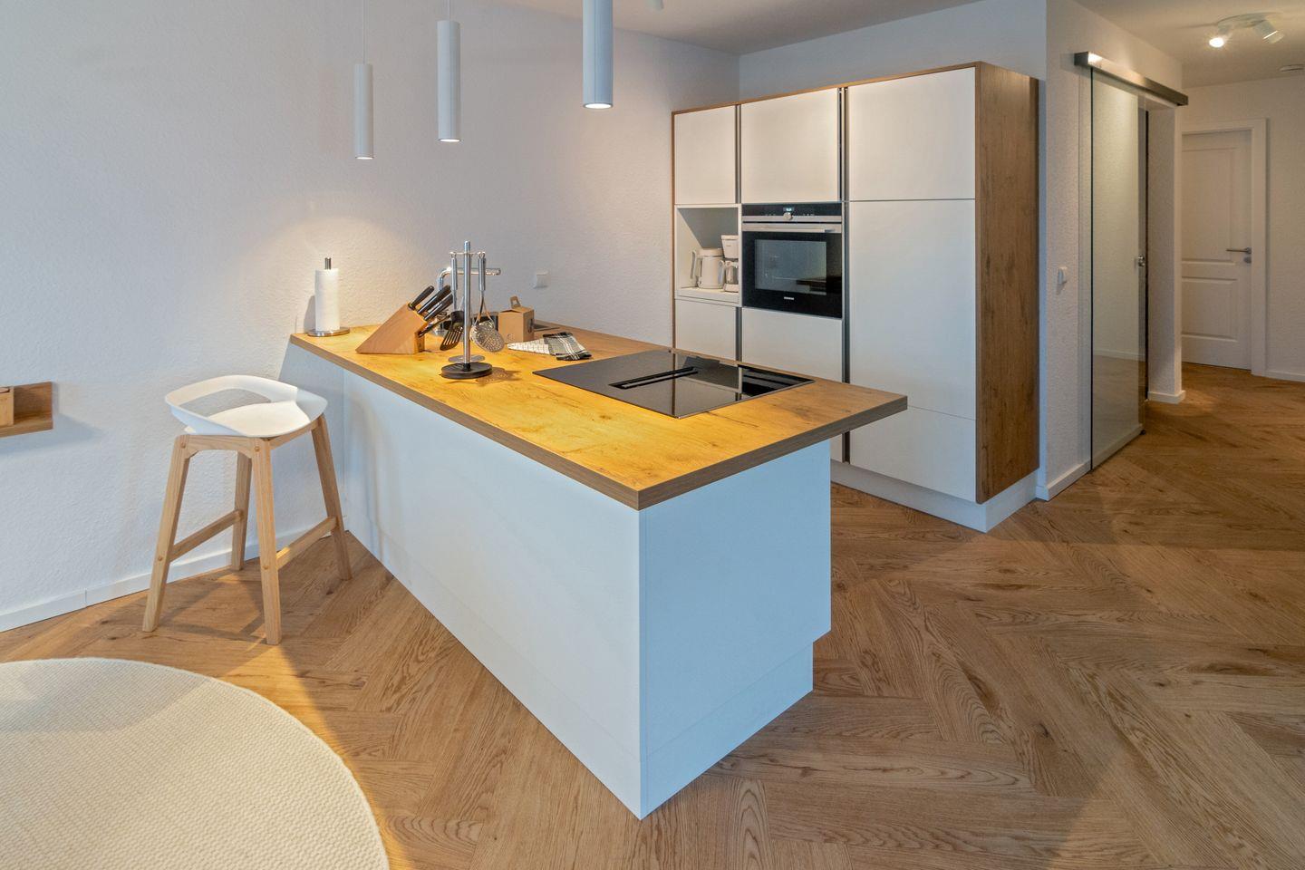 Diese moderne Neubauwohnung beeindruckt mit ihrer stilvollen Ausstattung und bietet auf etwa 82 m² großzügigen Raum für 4 Personen und ein Kleinkind. Sie befindet sich in einem Mehrparteienhaus in zentraler, jedoch ruhiger Lage direkt am malerischen Kanal – die perfekte Adresse für einen erholsamen Urlaub.