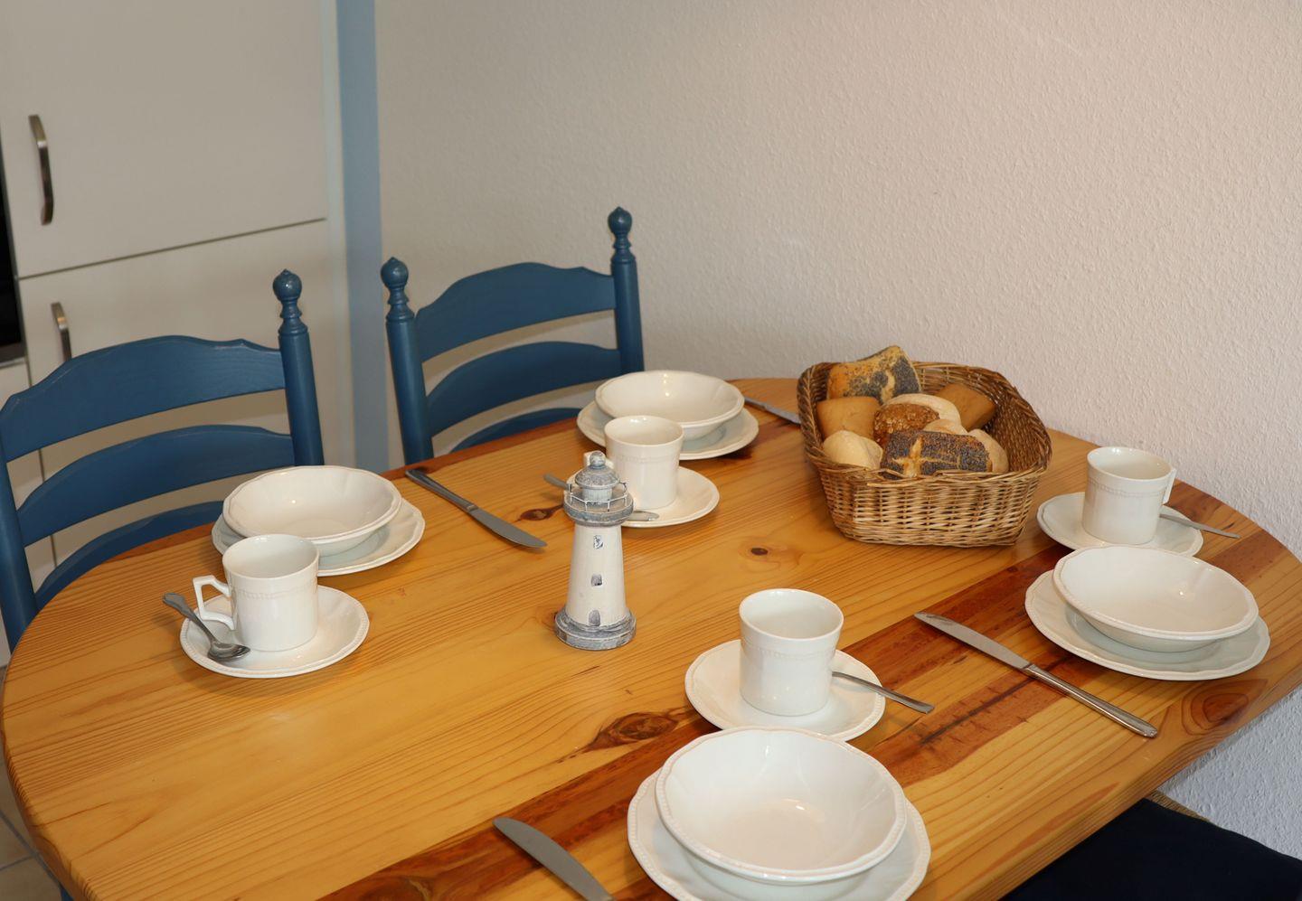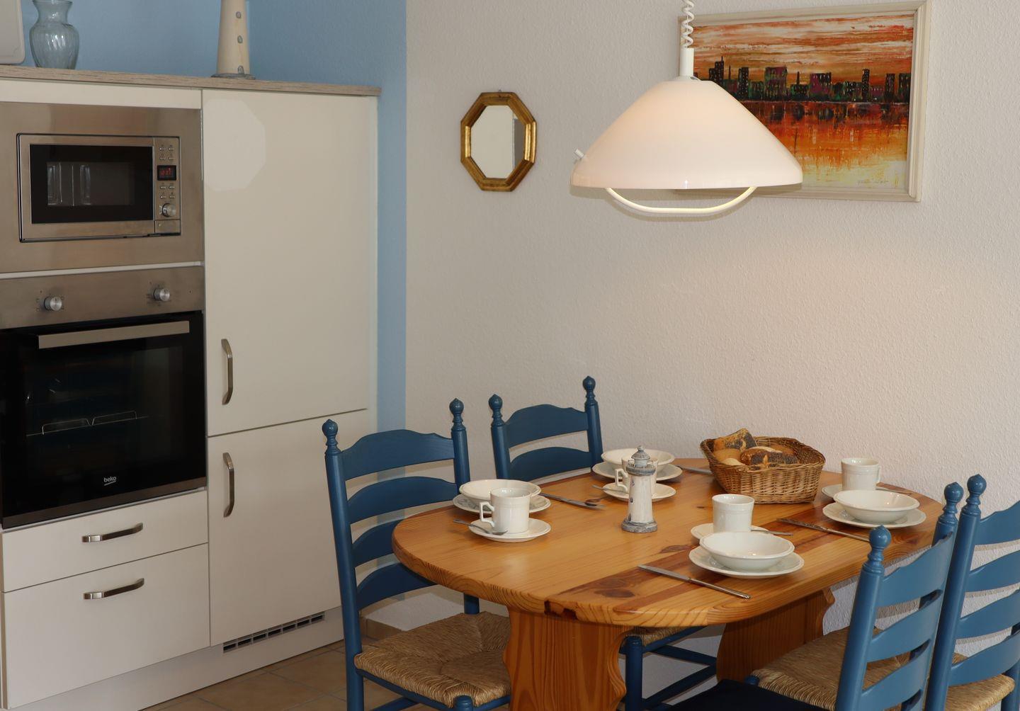 Zur Ausstattung gehören ein gemütliches Schlafzimmer und ein heller Wohn-/Essbereich mit offener Küche, die mit allem ausgestattet ist, was Sie für einen gelungenen Urlaub benötigen – inklusive Geschirrspüler. Das Bad mit Dusche und WC wurde 2022 komplett renoviert und überzeugt mit moderner Ausstattung.