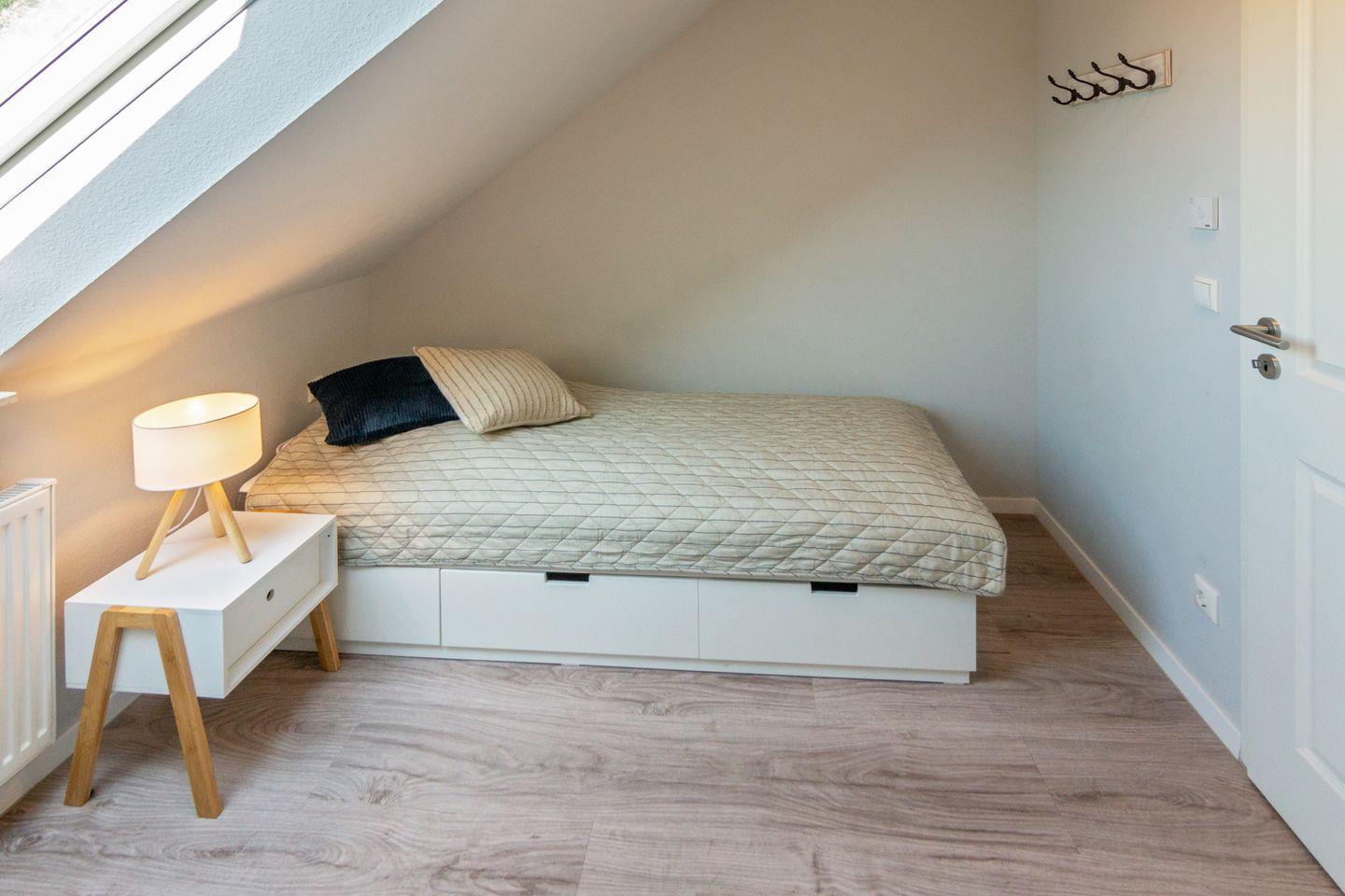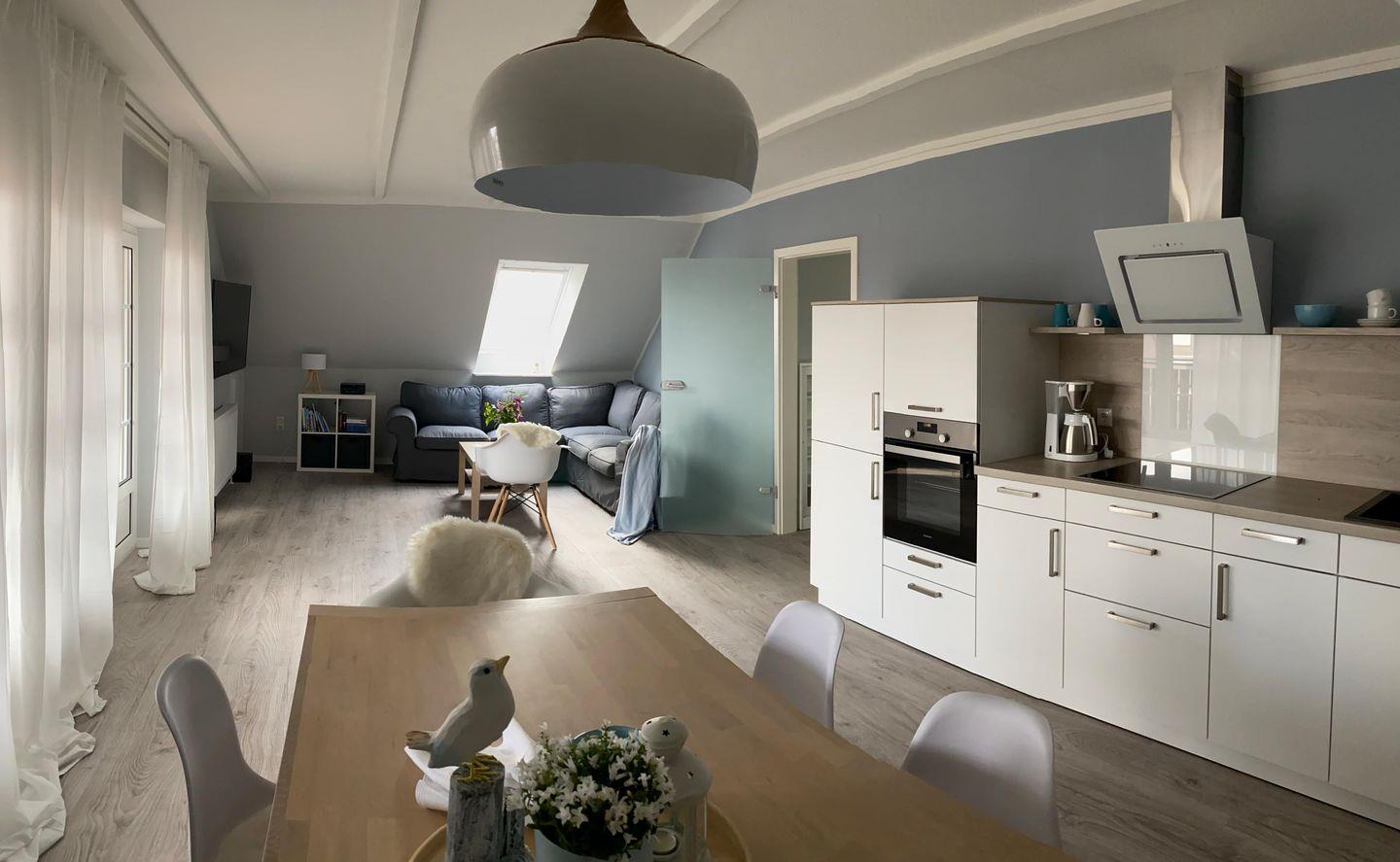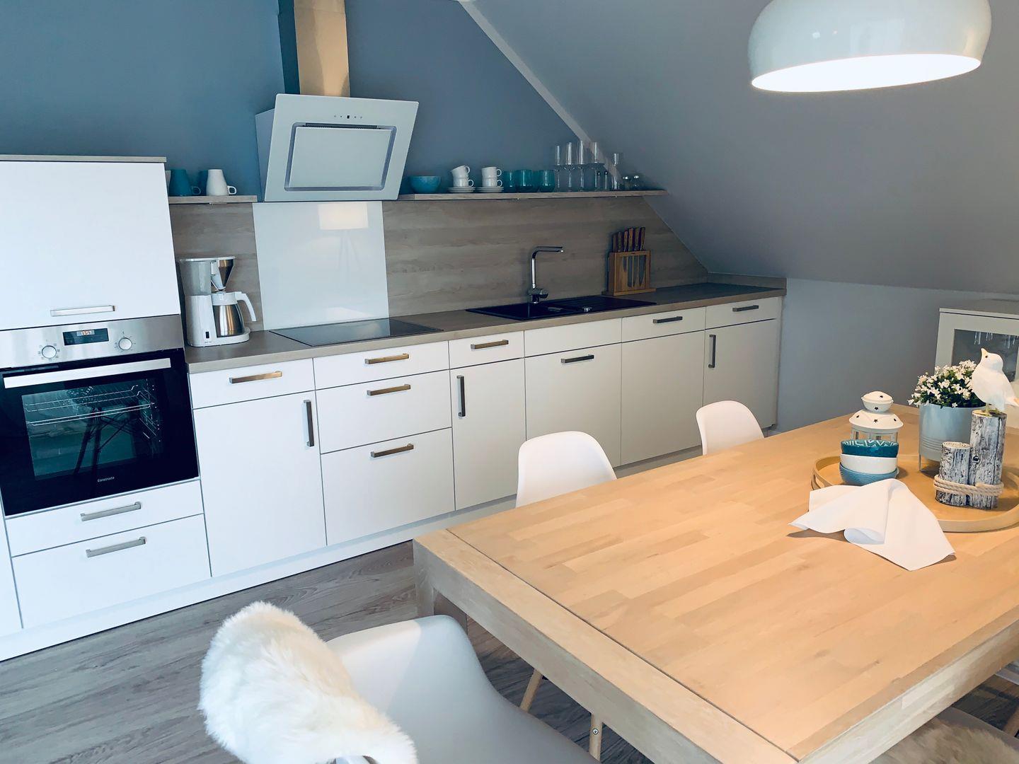 Unser "Oberdeck" liegt in der 1.Etage, verfügt über einen separaten Eingang und ist im komplett renoviert und neu ausgestattet worden. Die Wohnung ist in einem hellen, nordischen Stil gehalten, paart diesen mit einer grundlegenden Gemütlichkeit, die sich zu einer Wohlfühlatmosphäre verbindet. Zwei Schlafzimmer mit 1,80 m breiten Doppelbetten sowie ein Einzelzimmer (Bettengröße 0,90 x 1,80 m)bieten großzügig Platz für 5 Personen. Zwei Badezimmer mit Dusche, eines davon en Suite, ein großes, helles Wohn-/Esszimmer mit einem 16 qm großen Balkon bieten ausreichend Platz für die ganze Familie. Eine neue Küchenzeile, ein Massivholzesstisch, ein großer 55 Zoll Fernseher im Wohnzimmer, sowie ein zweiter Fernseher in einem der Schlafzimmer, Dachflächenfenster mit elektrischen Rollläden zu der Südseite und Verdunkelungsrollos zu der Nordseite, sowie ein Safe runden das hochwertige Angebot dieser Wohnung ab. Ein Sitzplatz im Garten steht zur Verfügung, sowie kostenloses WLAN. Bis zu zwei Hunde sind hier willkommen.