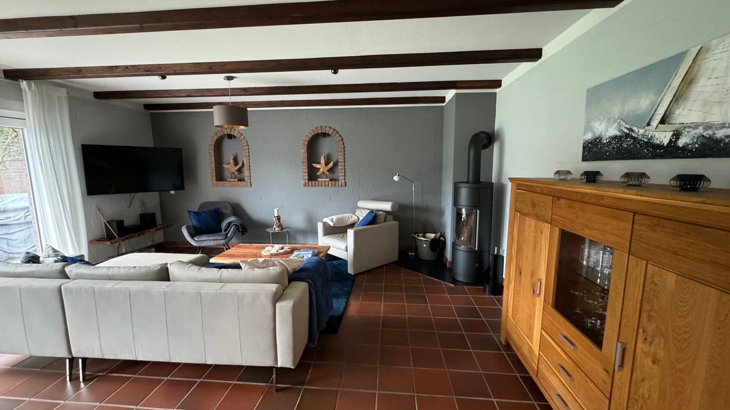 Die Ferienwohnung „Captains Deck“ befindet sich im Erdgeschoss und bietet komfortabel Platz für bis zu 6 Personen. Der großzügige Wohn-/Essbereich lädt mit seinem gemütlichen Kaminofen zum Verweilen ein. Hier steht Ihnen auch ein großer Fernseher zur Verfügung.