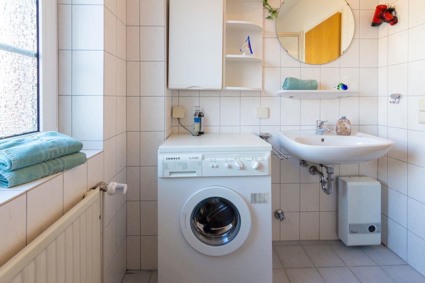Das Schlafzimmer ist mit einem bequemen Ehebett ausgestattet, das eine erholsame Nachtruhe garantiert. Das Tageslichtbad verfügt über eine Dusche, Waschbecken und ein WC. Ihre Wäsche können Sie in der vorhandenen Waschmaschine waschen.