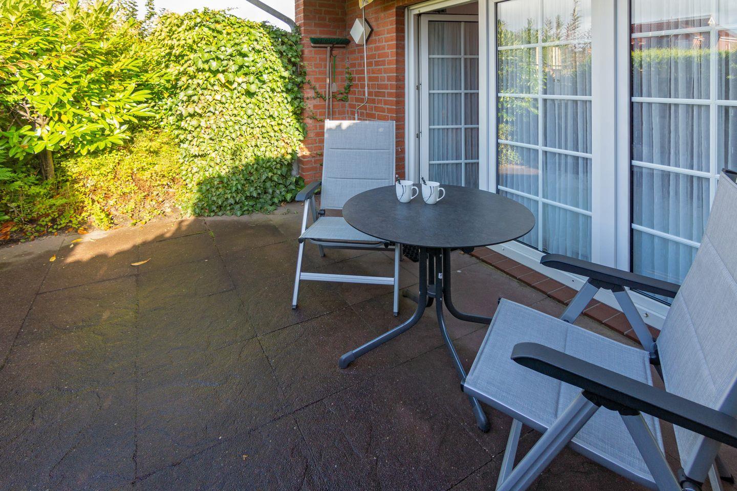 Die möblierte Terrasse bietet Ihnen die Möglichkeit, die frische Luft zu genießen und eignet sich hervorragend für ein gemütliches Frühstück oder einen entspannten Abend.