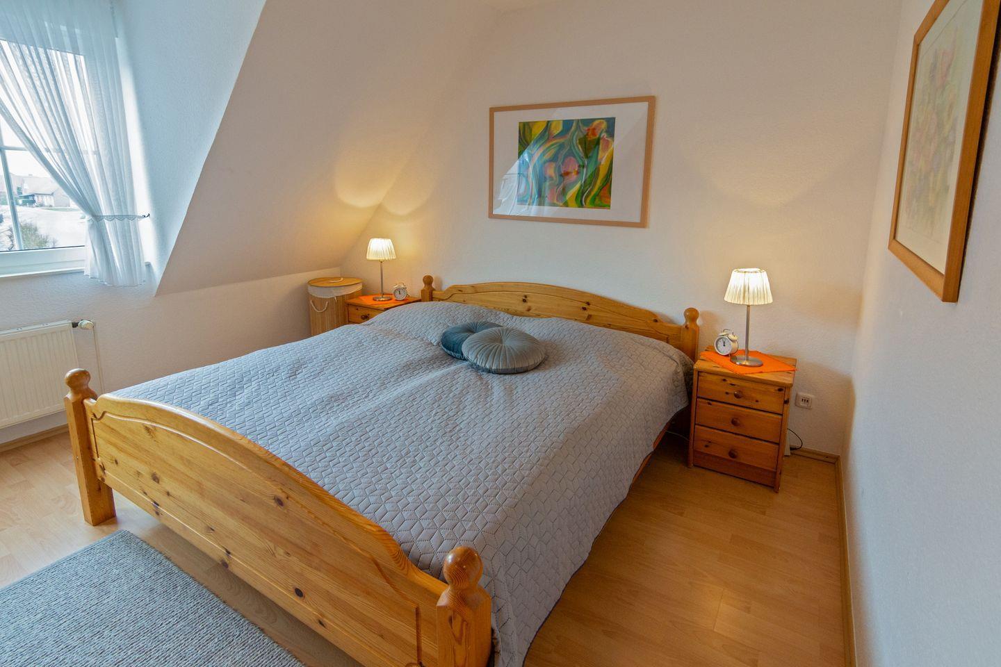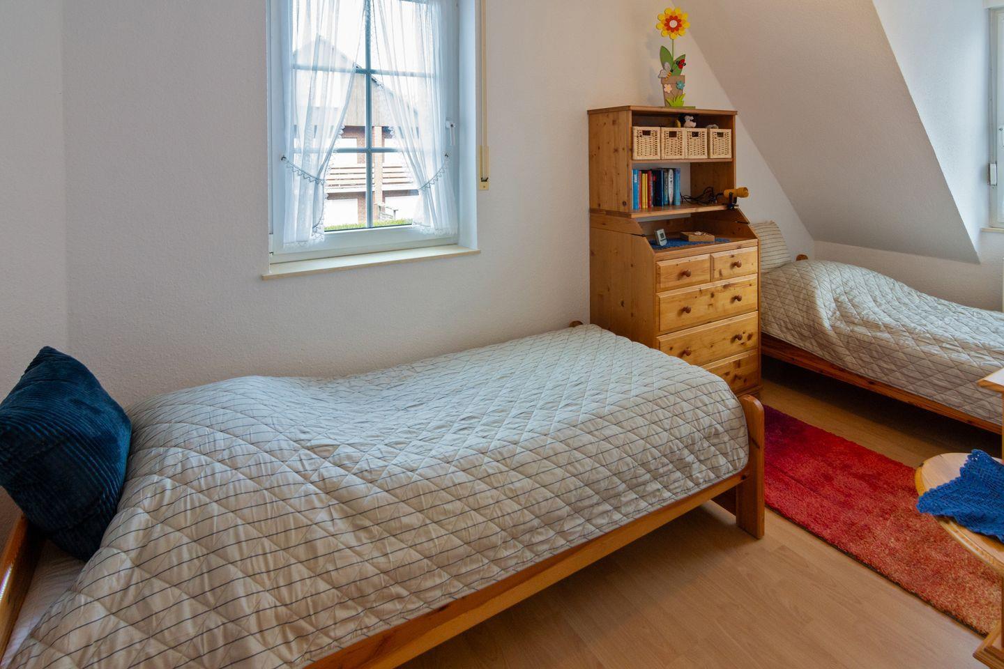 Im Erdgeschoss befindet sich der großzügige Wohn- und Essbereich, eine voll ausgestattete Küche sowie ein modernes Duschbad mit WC. Im Obergeschoss finden Sie zwei komfortable Schlafzimmer – eines mit einem Ehebett und eines mit zwei Einzelbetten. Zusätzlich gibt es ein weiteres Duschbad mit WC. Über eine platzsparende Raumspartreppe gelangen Sie von einem der Schlafzimmer in ein weiteres Zimmer ohne Tür, das mit einem Schlafsofa ausgestattet ist und zusätzlichen Schlafraum bietet.