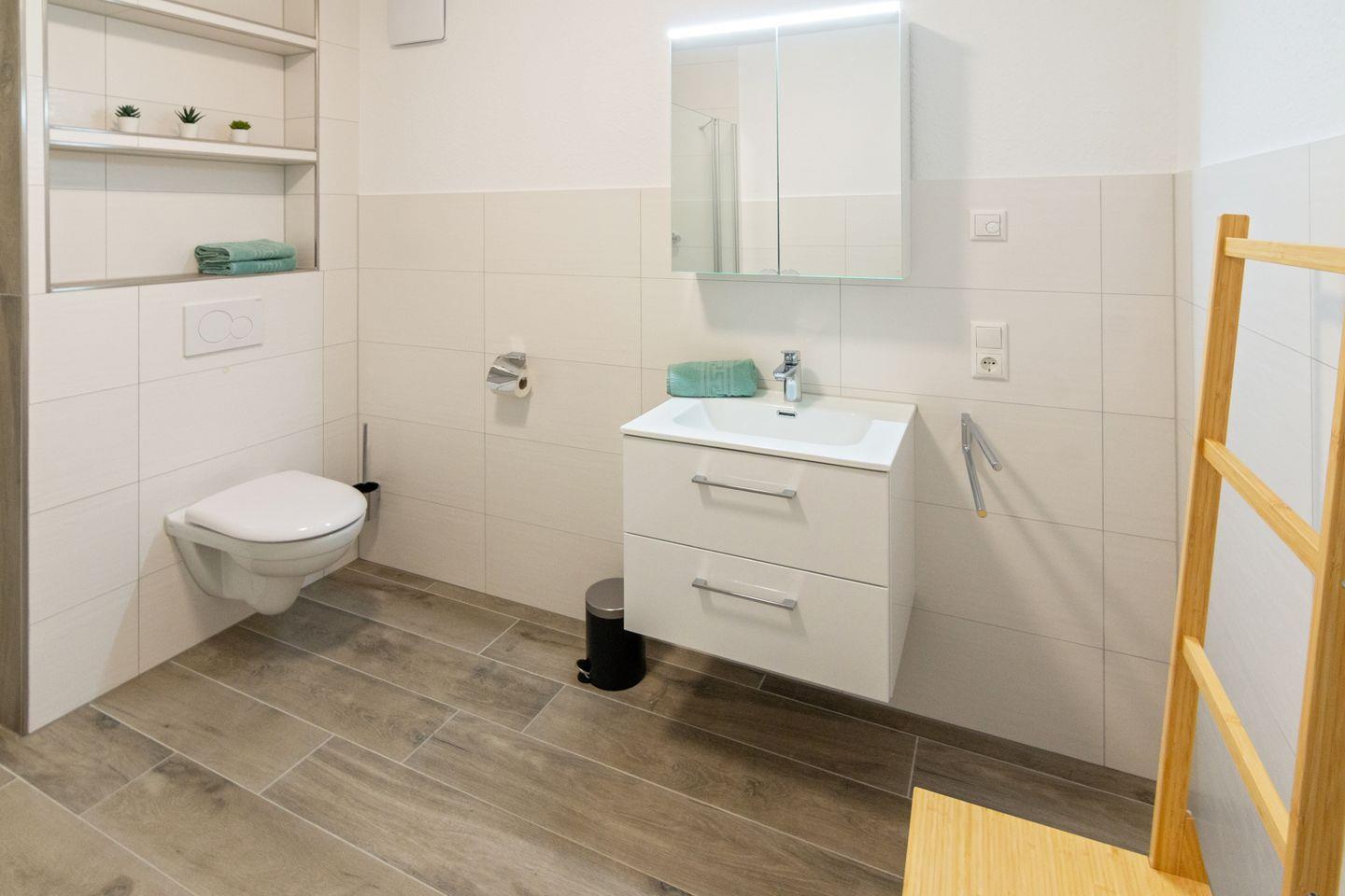 Die lichtdurchflutete Wohnung im ersten Stock überzeugt durch eine freundliche Atmosphäre und Fußbodenheizung. Im Wohnzimmer erwarten Sie ein gemütliches Sofa sowie ein TV mit Satellitenanschluss – ideal für entspannte Abende. Die Küche ist mit Induktionsherd, Backofen, Kühlschrank, Spülmaschine und Kaffeemaschine ausgestattet. Am Esstisch genießen Sie Ihre Mahlzeiten in geselliger Runde.
