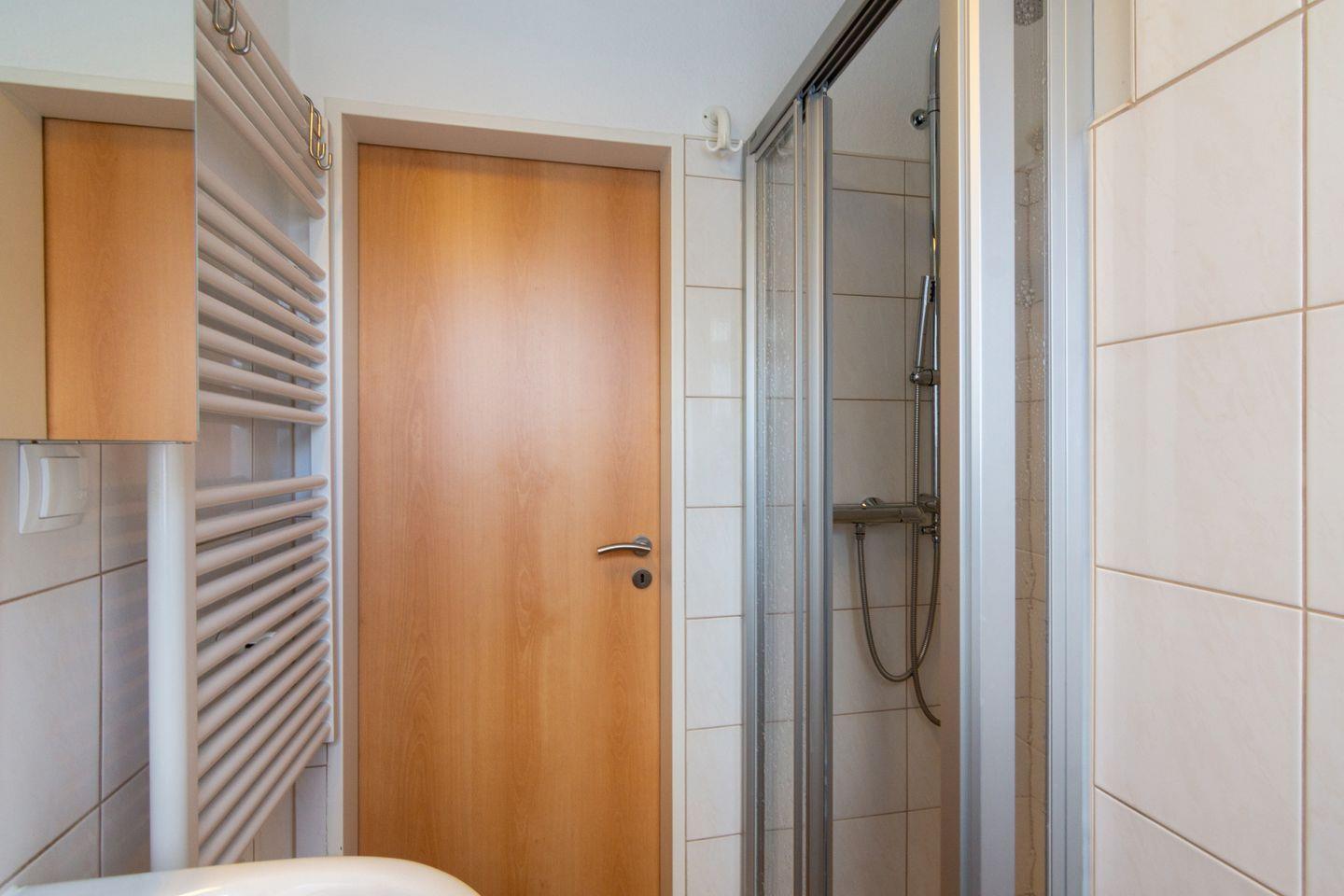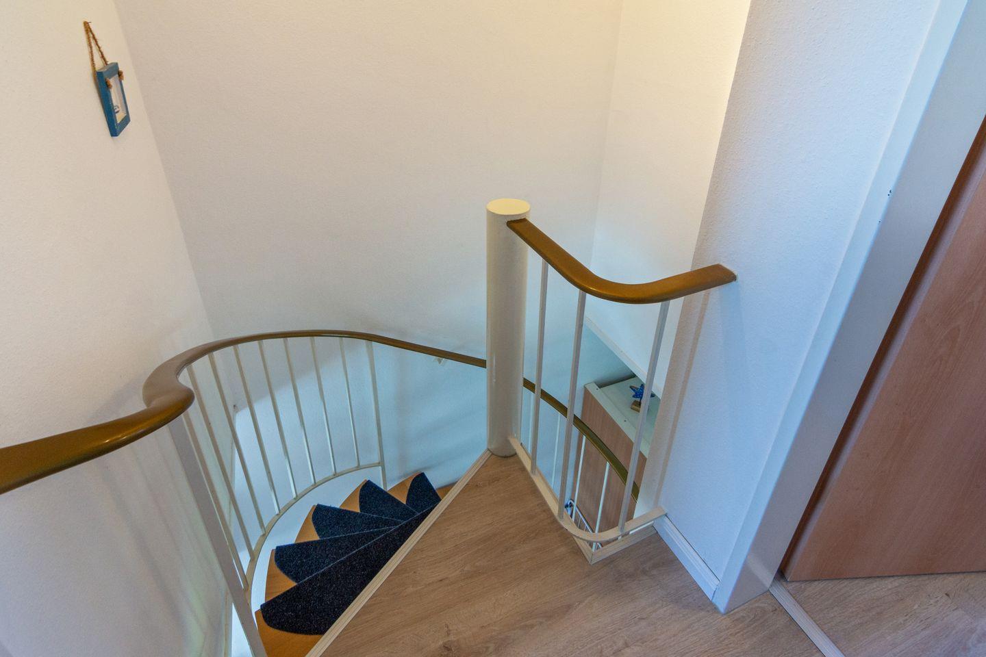 Das moderne Bad bietet eine Dusche, WC, Waschbecken und einen Haartrockner. Auf der sonnigen Terrasse mit Gartenmöbeln und Markise können Sie entspannen oder im gepflegten Garten mit Liegewiese zur Ruhe kommen. Der Zugang zum oberen Stockwerk erfolgt über eine etwas steilere Wendeltreppe.