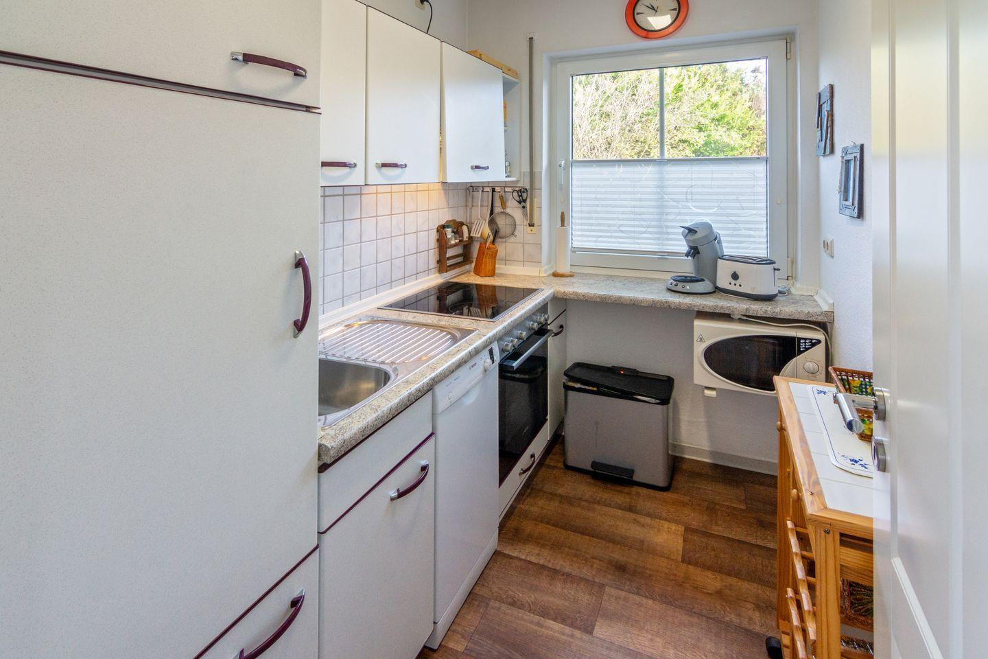 Die voll ausgestattete Küche bietet Ceranherd, Backofen, Mikrowelle, Spülmaschine, Kühlschrank mit Gefrierfach, Kaffeemaschine, Senseo, Toaster, Mixer und Wasserkocher. Im angrenzenden Essbereich können gemeinsame Mahlzeiten genossen werden.