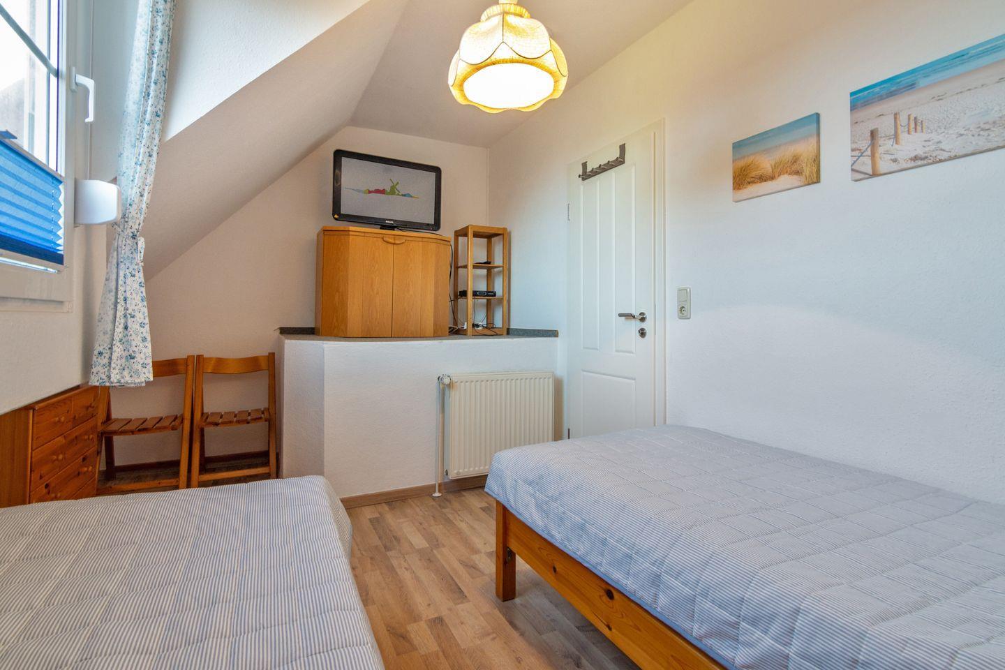 Das Haus erstreckt sich über zwei Etagen mit drei Zimmern, darunter zwei separate Schlafzimmer mit Laminatboden. Ein modernes Duschbad mit Dusche und ein zusätzliches Gäste-WC sorgen für Komfort. Im gemütlichen Wohnzimmer mit Sofa, Kamin, TV, DVD-Player und HiFi-Anlage lässt es sich wunderbar entspannen – Spiele, Bücher und kostenloses WLAN sind vorhanden. Ein weiterer Fernseher steht im Kinderzimmer bereit.