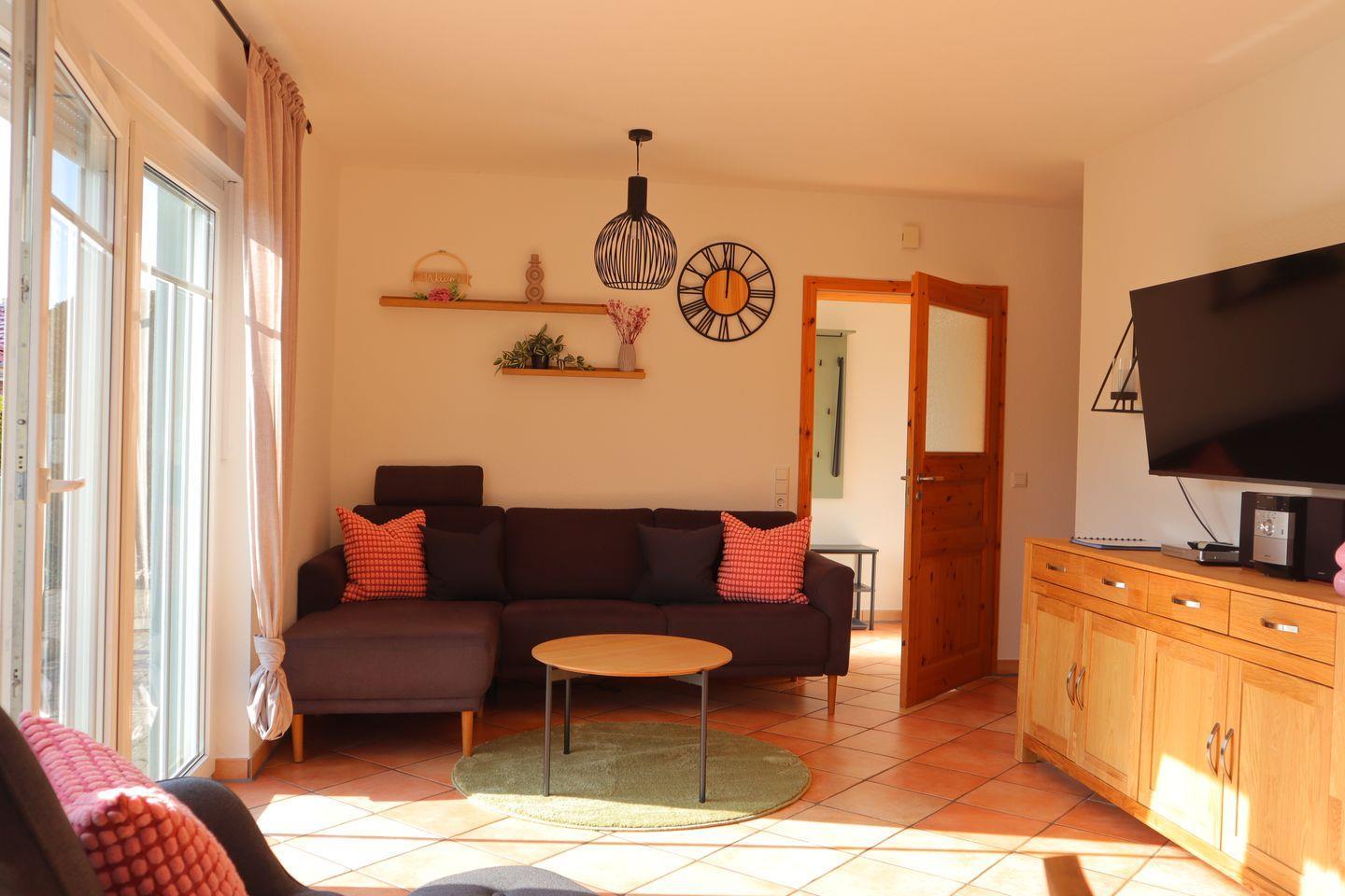 Das Wohnzimmer ist der perfekte Ort, um sich nach einem erlebnisreichen Tag zu entspannen. Setzen Sie sich in die Sofaecke, genießen Sie die wohlige Wärme des Kaminofens und schalten Sie den großen Fernseher ein, um Ihre Lieblingssendungen zu sehen.