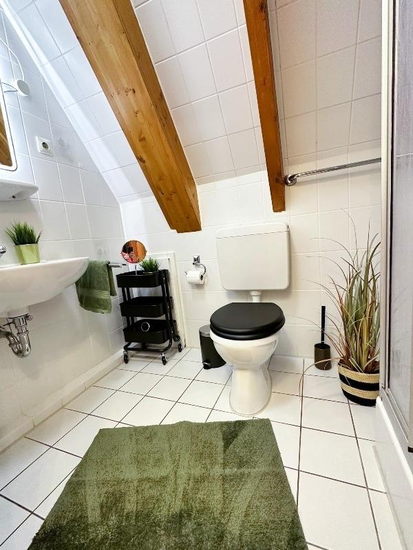 Das Apartment ist mit Laminatboden versehen. Kleines innenliegendes Duschbad. Ein Parkplatz befindet sich hinter dem Haus.