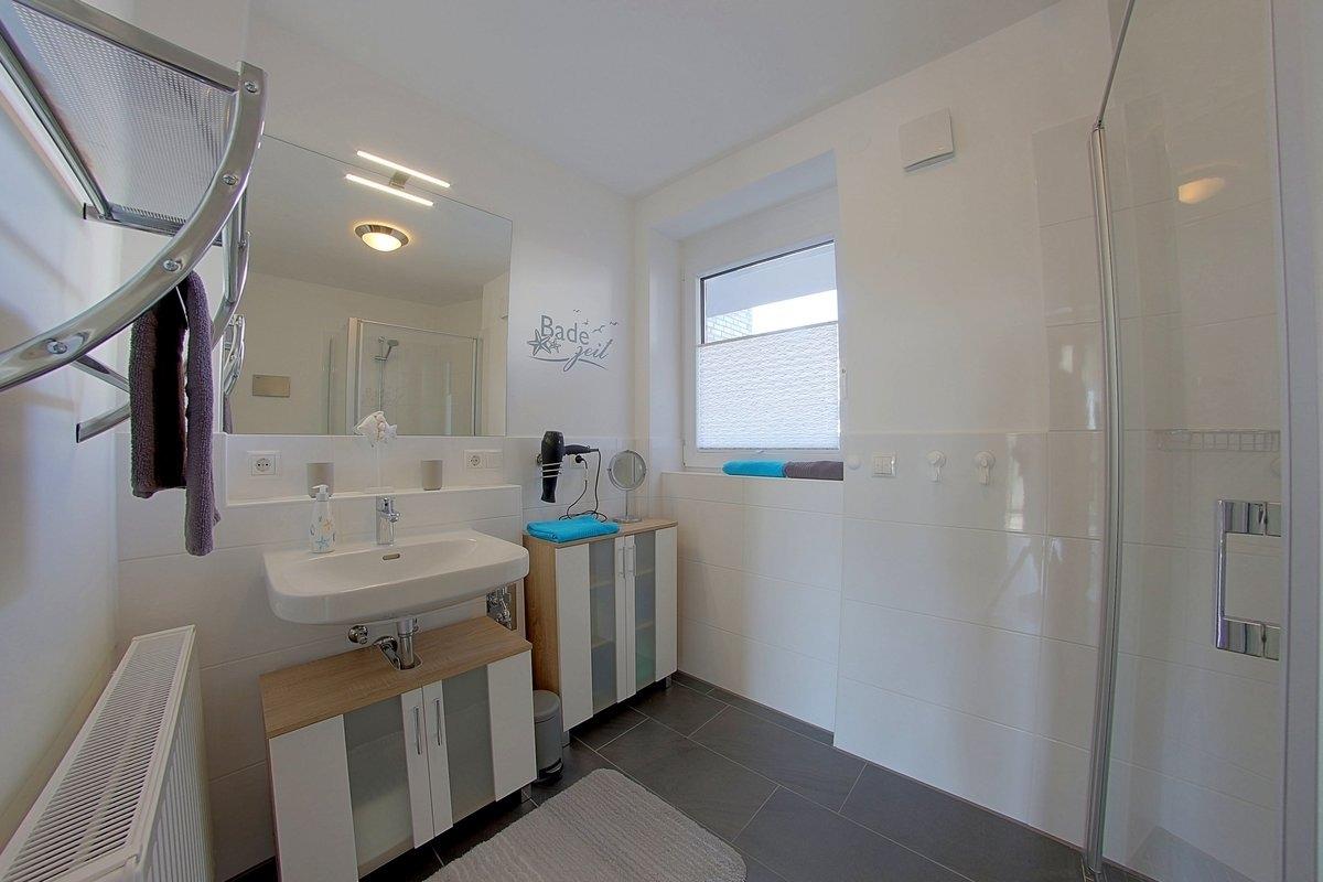 2 Schlafzimmer, eines mit Doppelbett (1,80 x 2,00 m) und 1 Schlafzimmer mit Bettsofa mit separater Matratze (1,40 x 2,00 m), sowie ein Duschbad mit bodengleicher Dusche und Fenster stehen hier zur Verfügung. Ein Babyreisebett steht zur Verfügung