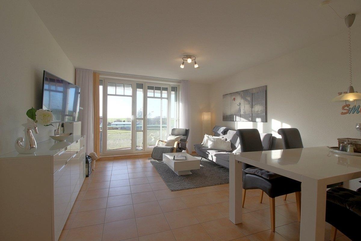 Von dem schönen Sonnenbalkon aus blicken Sie direkt auf den Deich und können die Weite der Natur genießen. Die Wohnung ist mit elektrischen Rolläden ausgestattet, zusätzlich befindet sich im Wohn- und Schlafzimmer ein praktisches Fliegengitter.