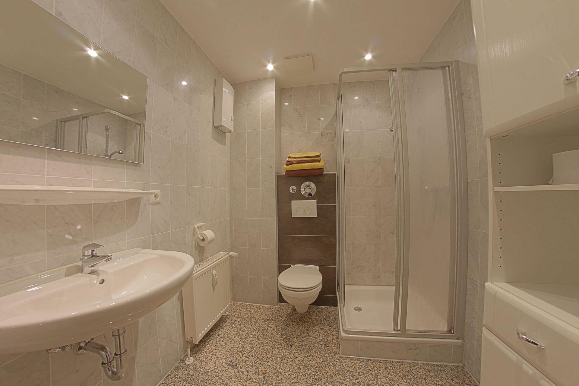 Das Appartement verfügt über eine Terrasse mit Tisch und 4 Stühlen. Das Bad ist zeitlos modern. Ein Stellplatz gehört zur Wohnung, Fahrradhaus für Gäste vorhanden.