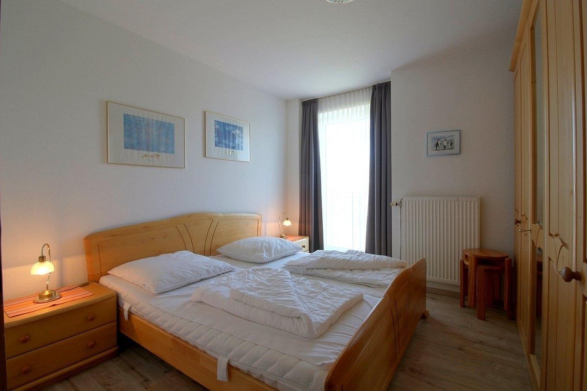 Zwei geräumige Schlafzimmer, eins mit Doppelbett 180 x 2,00 m und eins mit 2 Schrankbetten bieten Platz für bis zu 4 Personen. Ein Babyreisebett steht ebenfalls bereit.