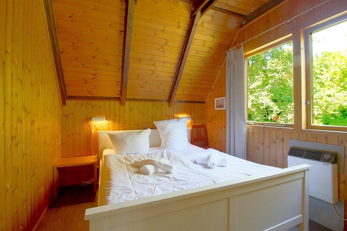 Im Erdgeschoss des Hauses befindet sich der offene Wohn-, Ess- und Küchenbereich, ein Schlafzimmer mit Doppelbett (1,60 x 2,00 m) durchgehende Matratze und ein einfaches Duschbad mit Fenster. Das Wohnzimmer verfügt über einen Kaminofen und FLAT-TV. Ab sofort auch kostenloses W-Lan verfügbar. Für die kleinen Gäste gibt es eine Kinderspielecke.
