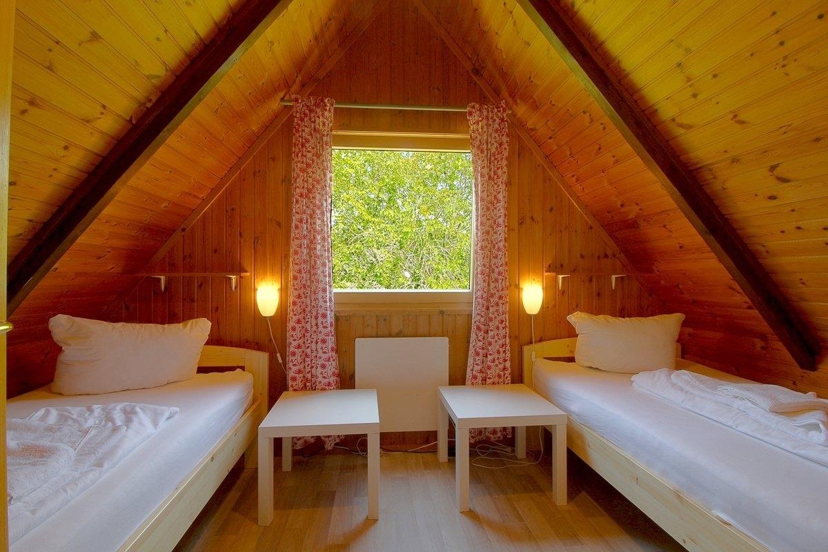 Im Obergeschoss befinden sich 2 weitere Schlafzimmer eins mit 2 Einzelbetten und eins mit französischem Bett (1,40 x 2,00 m). 2 Reisebetten, 1 Hochstuhl und 1 Trip Trap Stuhl stehen zur Verfügung.