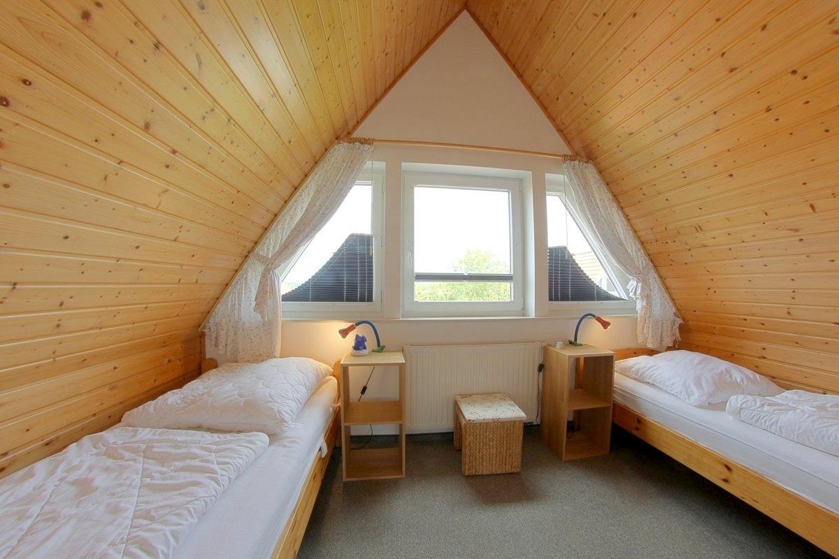 Im OG finden Sie die beiden Schlafzimmer, die durch einen Flur von einander getrennt sind.