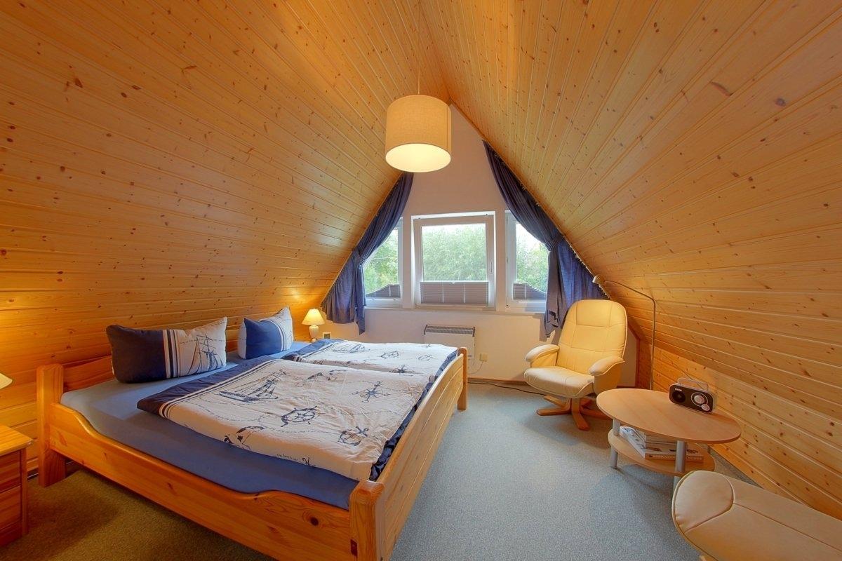 Ein Schlafzimmer mit Doppelbett und Flachbild TV mit integriertem DVD-Player, ein Schlafzimmer mit zwei Einzelbetten und Flachbild TV mit integriertem DVD-Player im Obergeschoß stehen Ihnen hier im Haus zur Verfügung. Die Schlafräume verfügen über Verdunkelungsmöglichkeit. Alle Fenster mit Insektenschutz.