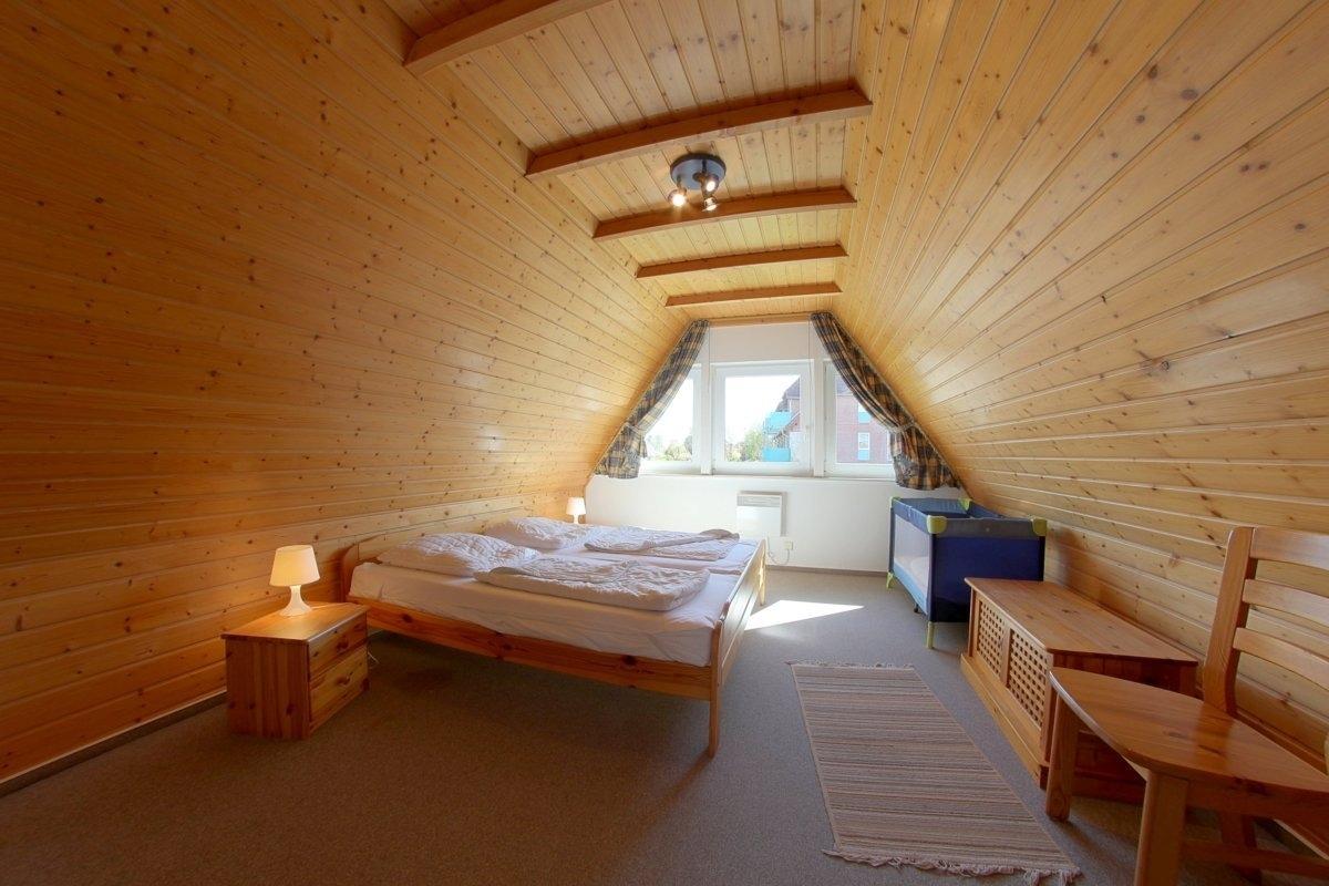 Ein Schlafzimmer mit Doppelbett und Babyreisebett, sowie ein Schlafzimmer mit zwei Einzelbetten und ein helles Duschbad mit Waschmaschine stehen Ihnen hier im Haus zur Verfügung. Die Schlafräume sind mit Teppichboden ausgestattet.