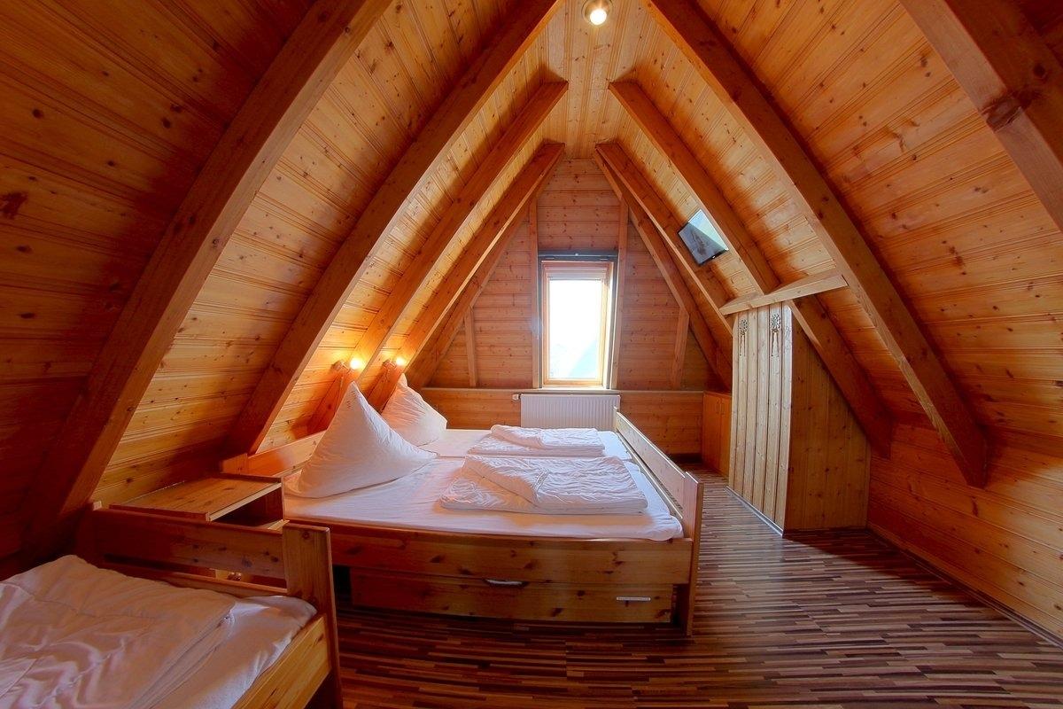 2 Schlafräume stehen im Obergeschoss zur Verfügung. 1 Schlafzimmer mit Doppelbett und Einzelbett, sowie Flat-TV und ein weiteres Schlafzimmer mit Einzelbett und einem französischen Bett und ebenfalls ein Flat-TV, so das alle bequem schlafen können. Ein WC gibt es ebenfalls im Obergeschoss.