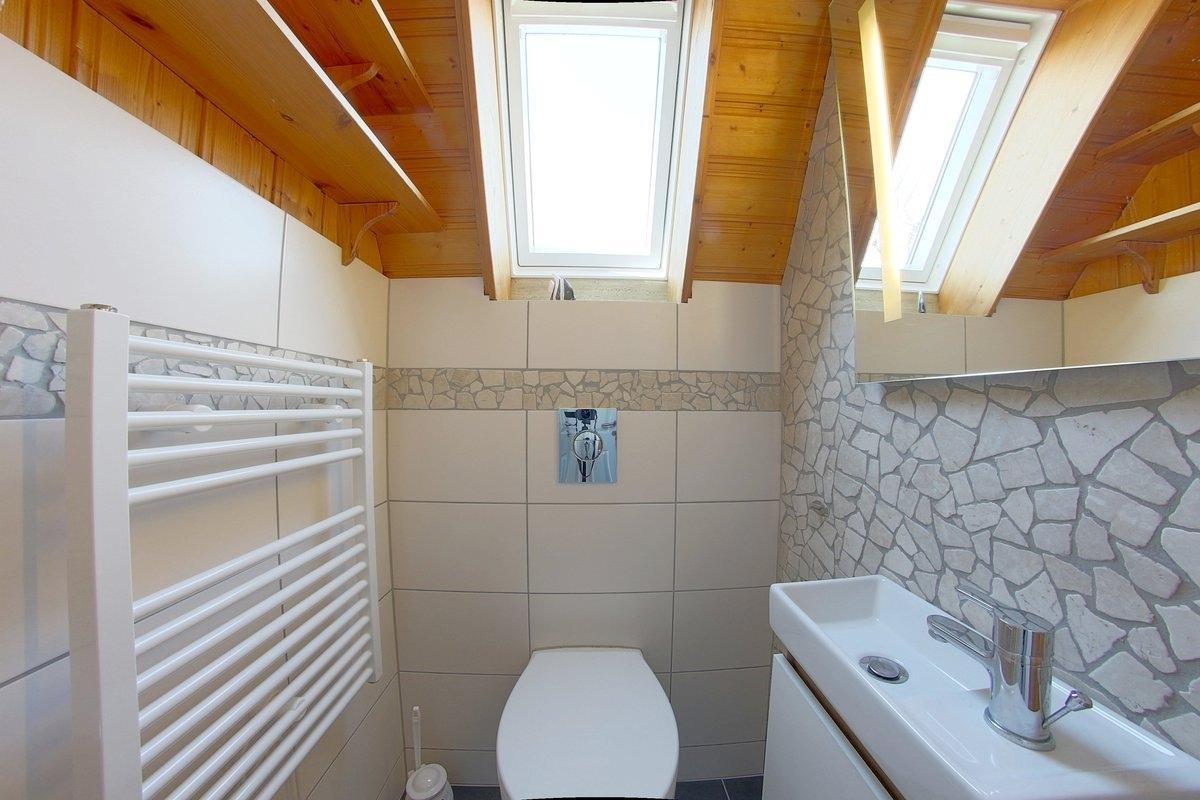 Die Küche mit Geschirrspüler bietet ausreichend Platz für die Zubereitung der Mahlzeiten, damit Sie im Urlaub auf nichts verzichten müssen. Im Erdgeschoss befindet sich auch das großzügige, modernisierte Duschbad.