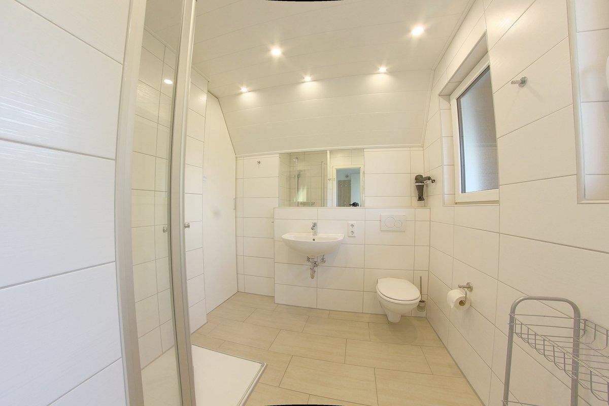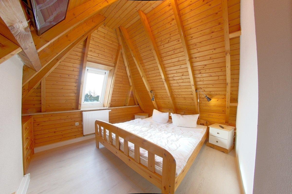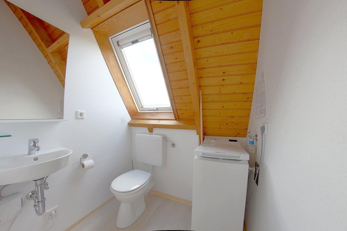 Im oberen Bereich finden Sie ein Schlafzimmer mit Doppelbett und TV, sowie ein Schlafzimmer mit 2 Einzelbetten. Ein zusätzliches WC mit Waschbecken und Waschmaschine befindet sich ebenfalls im Obergeschoss. In den Wandschränken ist ein Kinderreisebett und eine Kinder-Treppensicherung verfügbar und Platz für ihr Reisegepäck.