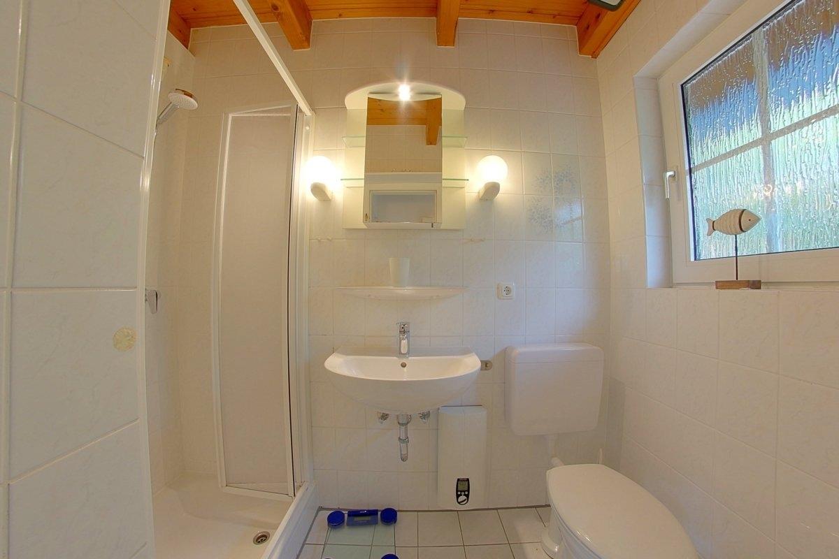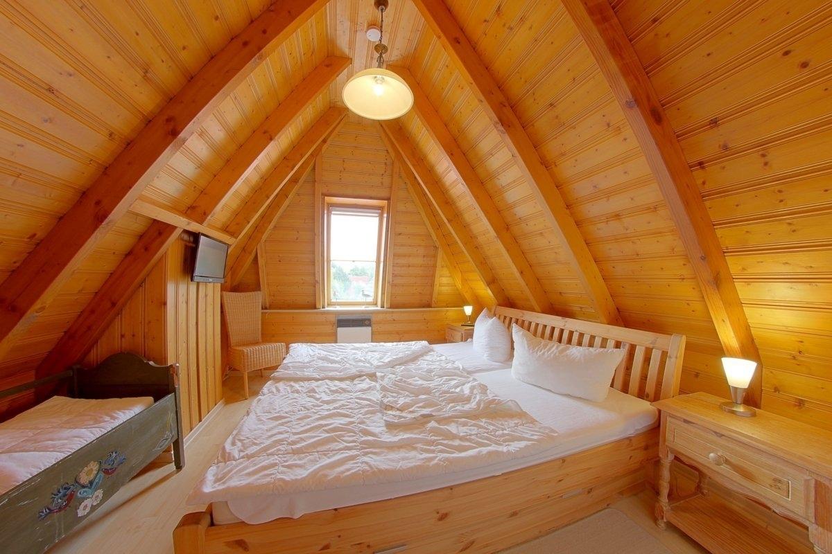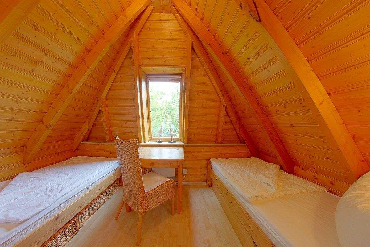 Im Obergeschoss befinden sich ein Schlafzimmer mit Doppelbett und Kinderbett, sowie Flachbild TV und ein Schlafzimmer mit 2 Einzelbetten. Ein zusätzliches WC gibt es außerdem.