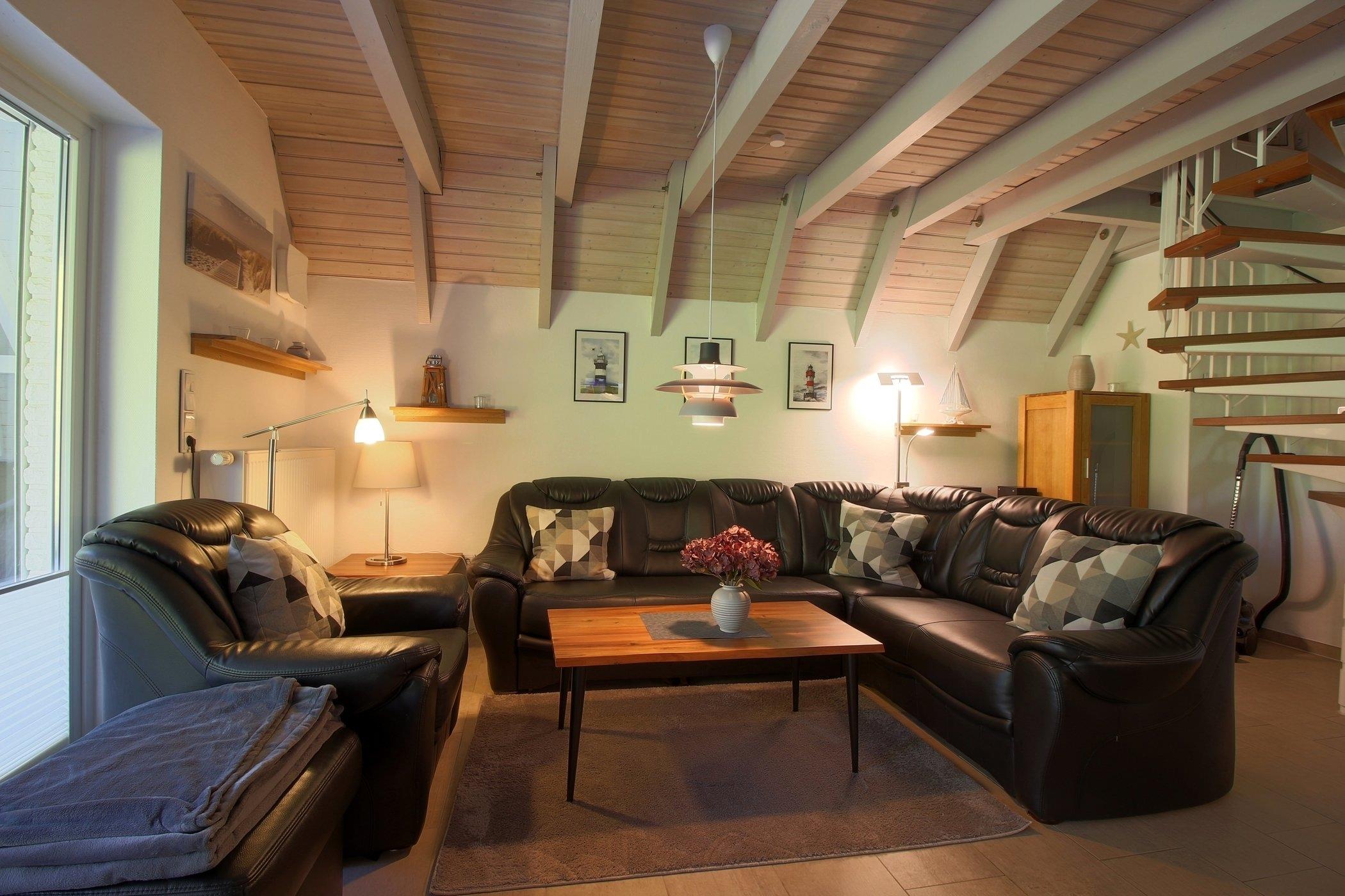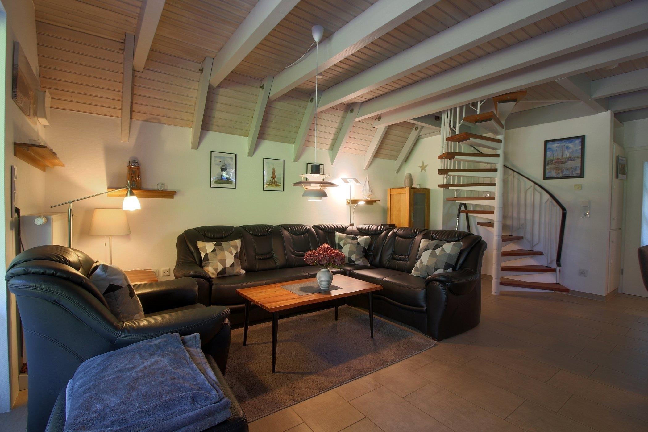 Im Erdgeschoss verfügt das Haus über einen offenen Wohn- und Essbereich, eine komplett ausgestattete Einbauküche und ein modernisiertes Duschbad mit bodengleicher Dusche, Waschmaschine und Fenster. An stürmischen Tagen sorgt eine Gas-Zentralheizung für eine wohlige Wärme. Das vorhandene elektrische Lüftungssystem entfernt bei Bedarf überschüssige Luftfeuchtigkeit und Gerüche schnell und effektiv aus dem Wohnbereich. Diese kann jederzeit an- bzw. abgeschaltet werden.