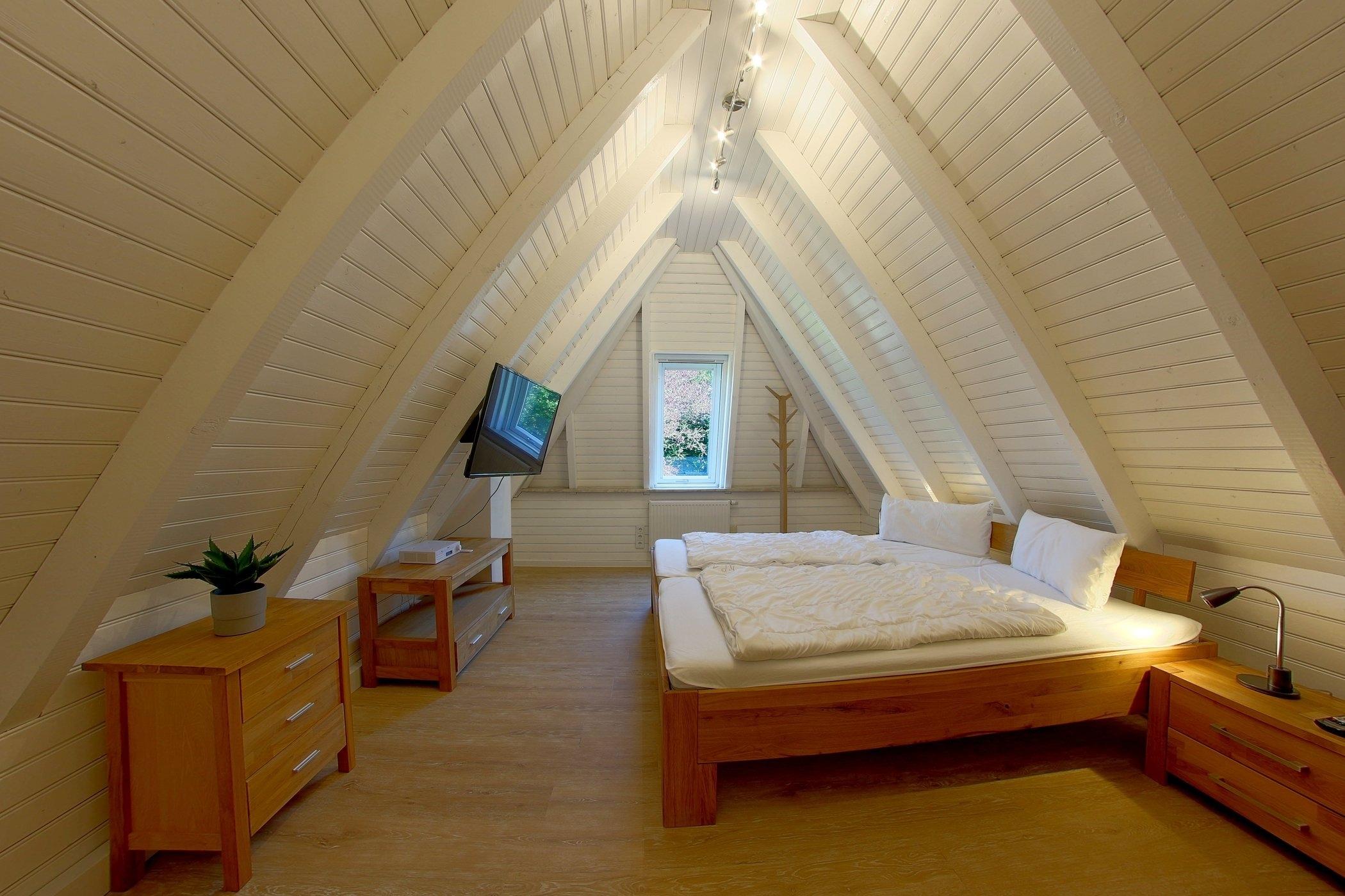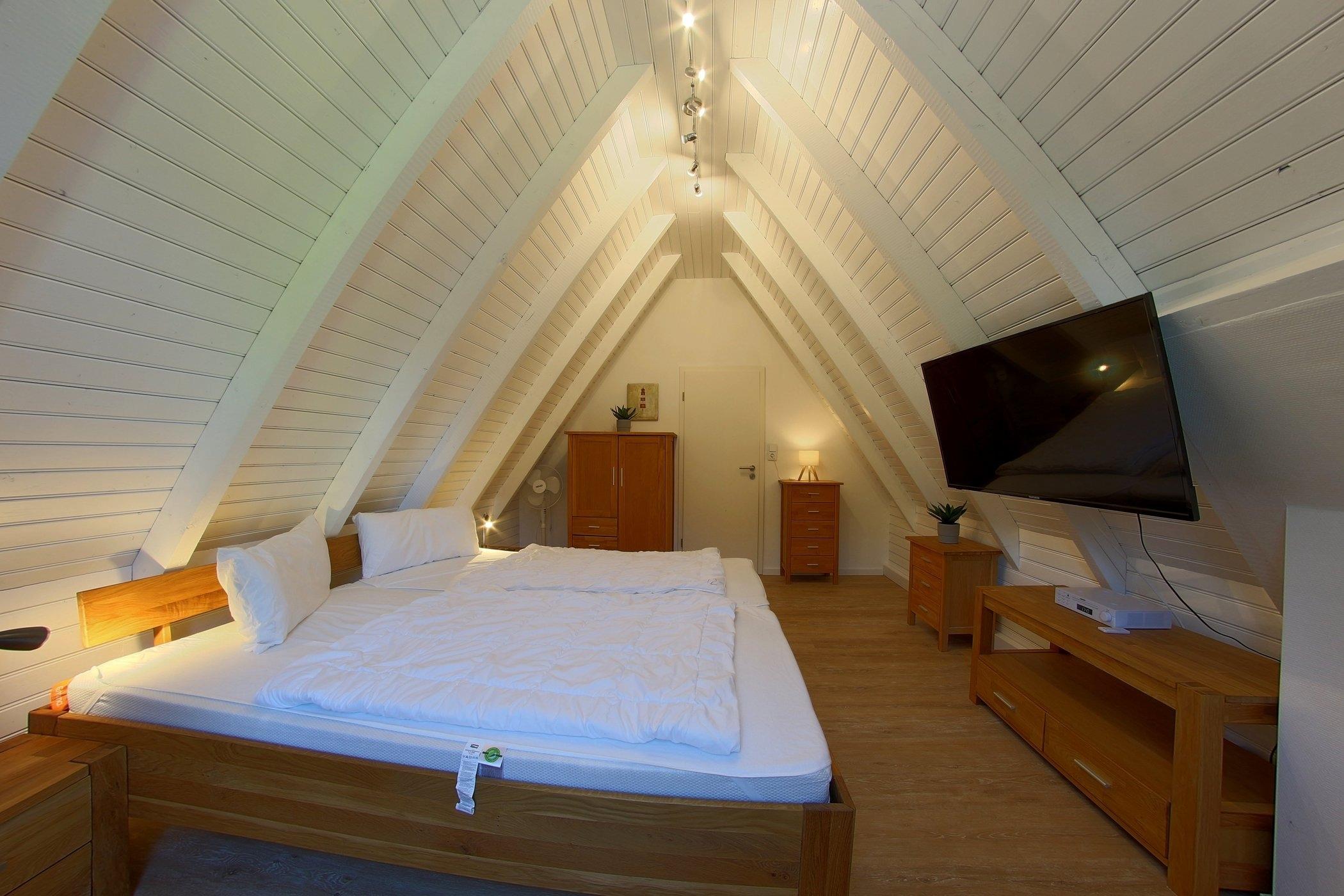 Im oberen Bereich finden Sie ein Schlafzimmer mit Doppelbett (2,00x2,00m) und Flachbild TV, sowie ein Schlafzimmer mit 2 Einzelbetten (1,00x2,00m) und FlachbildTV.