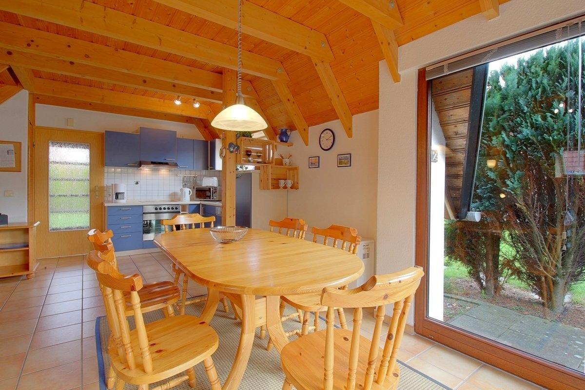 Die Küche ist komplett ausgestattet, hier fehlt es an nichts. Der sonnige Essbereich mit Blick in den Garten ist groß genug für die ganze Familie.