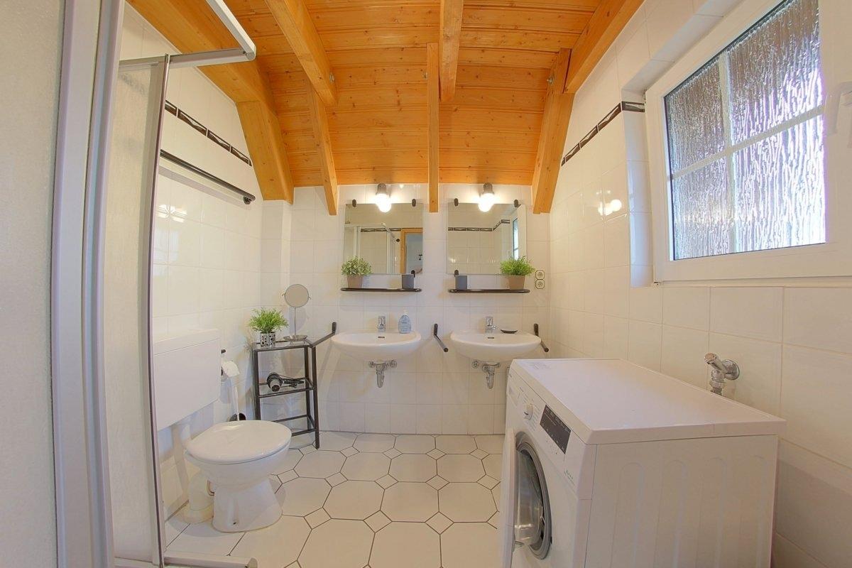 Ein helles Duschbad mit Fenster und Waschmaschine befindet sich ebenfalls im Erdgeschoss.