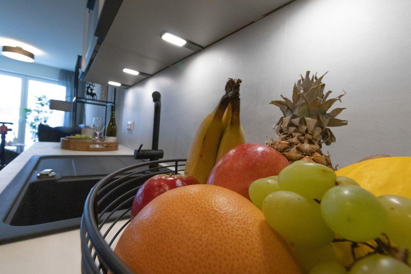 Im offenen, hellen Wohnbereich findest du Platz zum Entspannen und Genießen. Die gemütliche Sitzecke, große Fenster und der Zugang zum sonnigen Balkon schaffen eine freundliche Atmosphäre. Die offene Küche mit liebevollen Details, Markengeräten und rundem Esstisch macht Lust auf gemeinsames Kochen – ein Ort für Genuss und Geselligkeit.