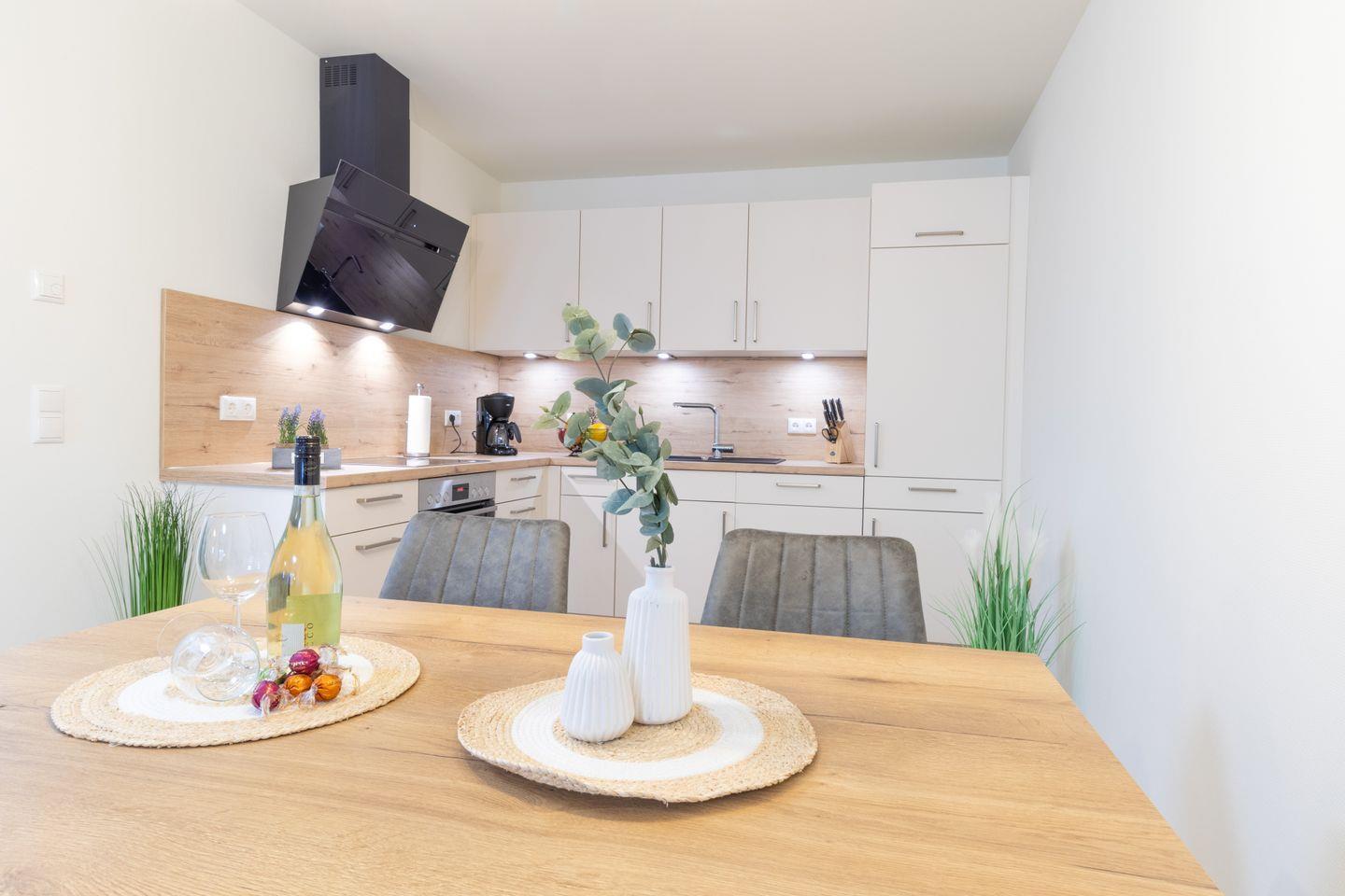 Der offene Wohnbereich ist lichtdurchflutet und stilvoll eingerichtet. Ein großes Ledersofa mit Schlaffunktion und ein Relaxsessel mit Leselicht bieten viel Komfort. Die moderne Küche mit gemütlichem Essbereich ist vollständig ausgestattet und lädt zu genussvollen Kochmomenten ein. Der angrenzende Balkon erweitert den Wohnraum ins Freie – ideal zum Frühstücken in der Sonne oder für einen entspannten Abend mit einem Glas Wein.