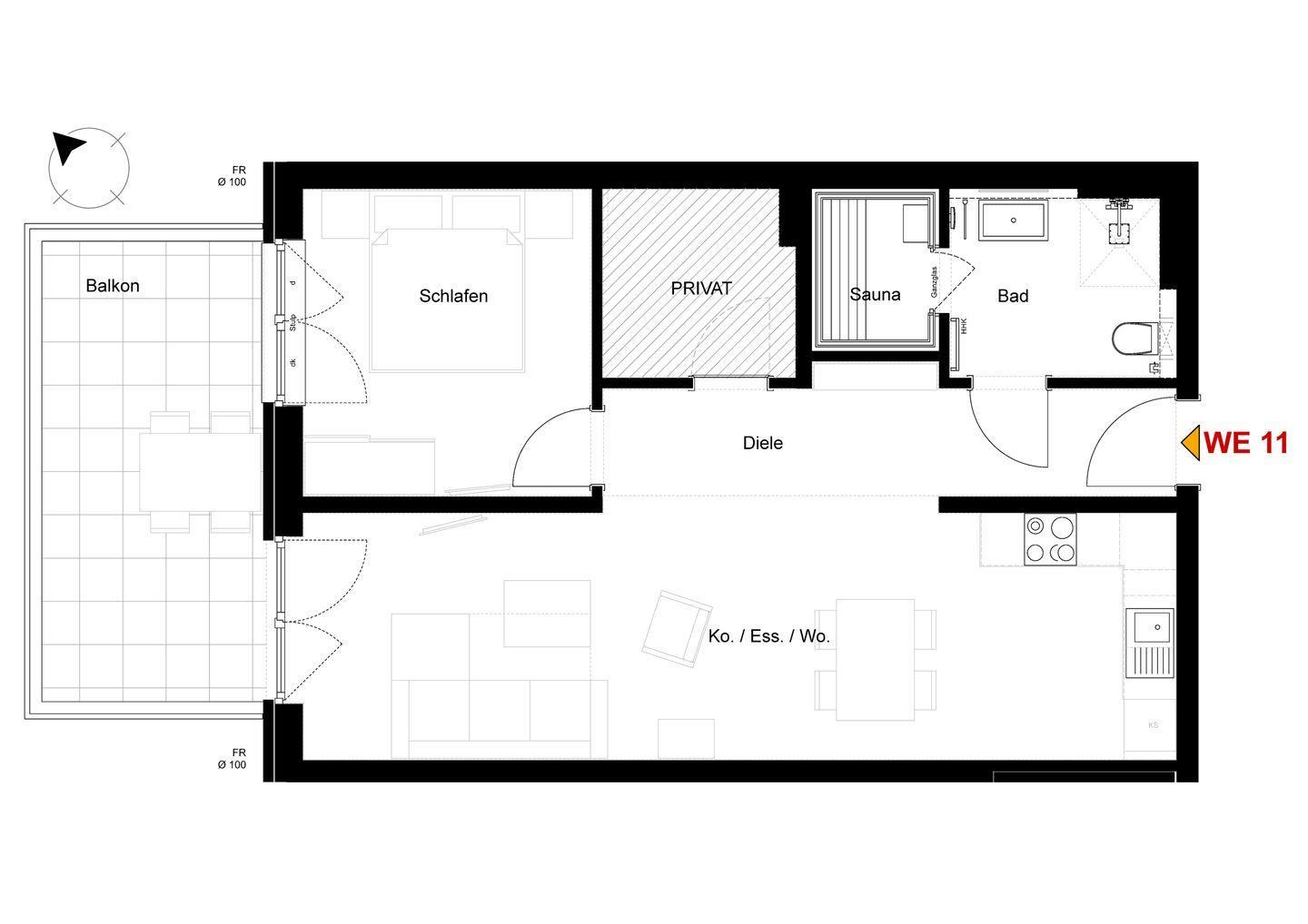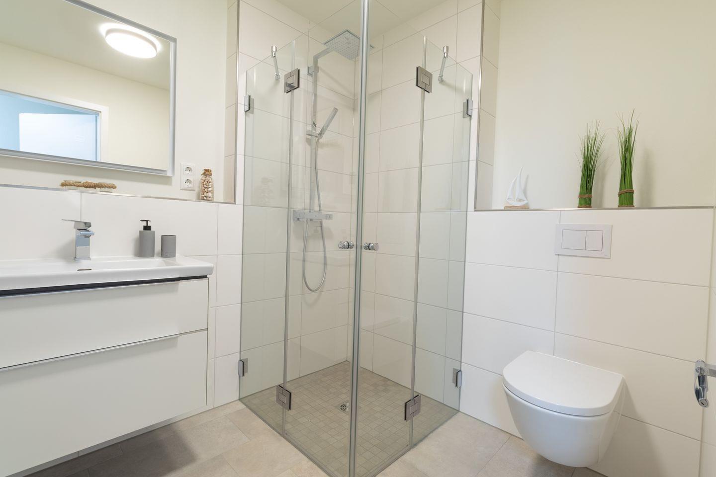 Das moderne Badezimmer wird zur persönlichen Wellnessoase. Eine großzügige Dusche und eine eigene Sauna schenken dir wohltuende Entspannung – besonders angenehm an kühleren Tagen oder nach langen Spaziergängen an der Küste.