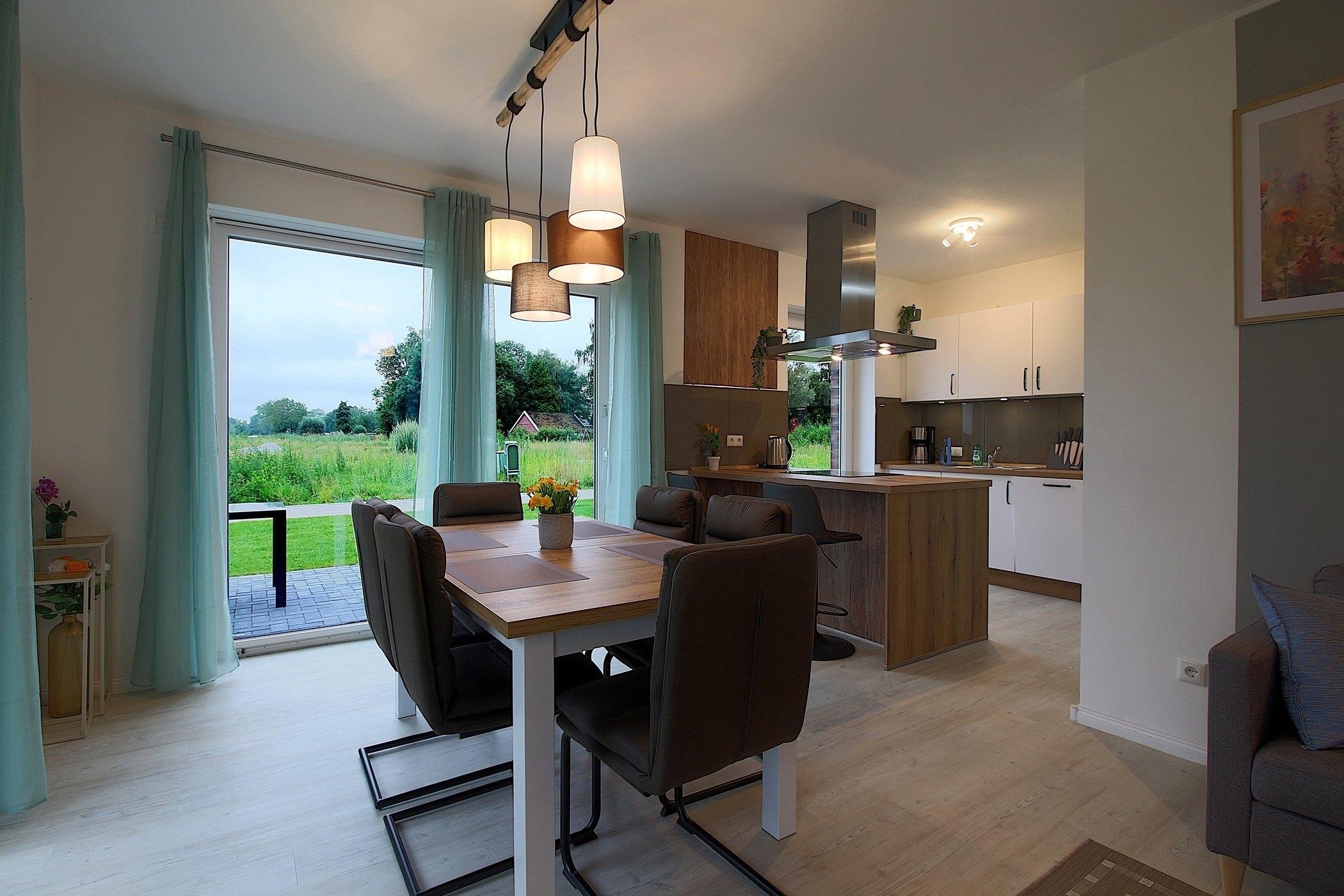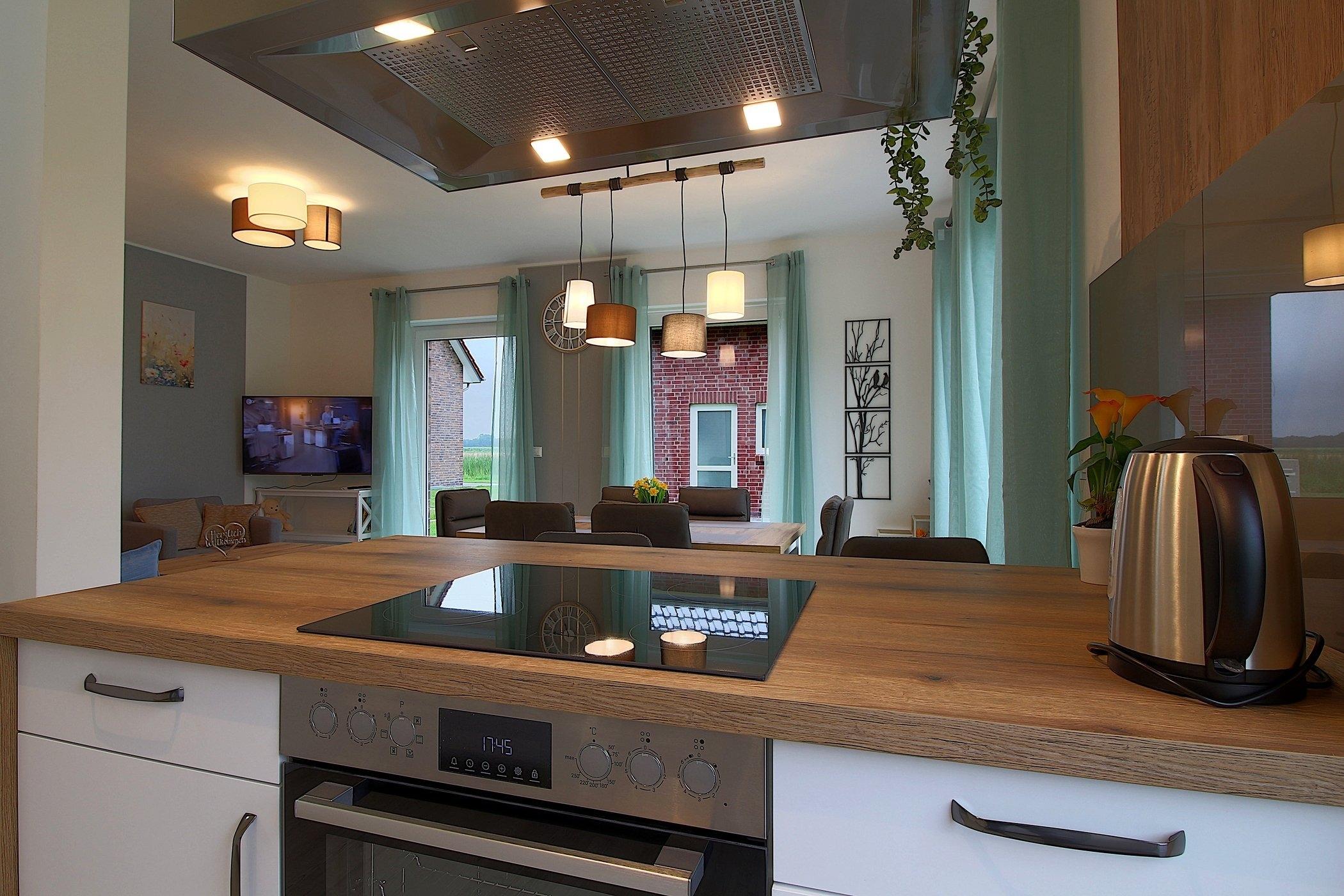 In der Küche mit Einbauküche und Kochinsel könne Sie leckere Mahlzeiten zubereiten, für den Smutje ist alles an Kochgeschirr vorhanden.