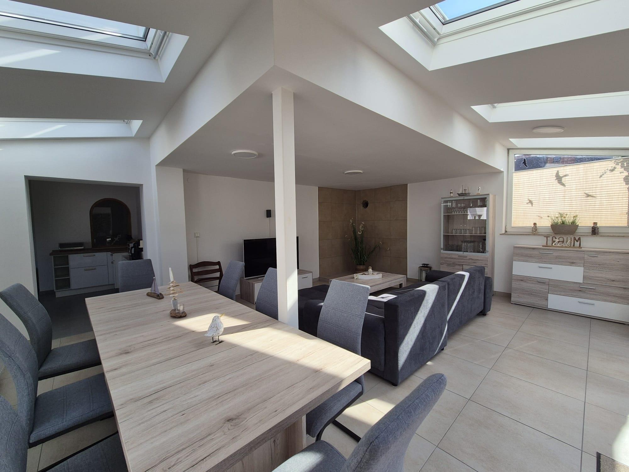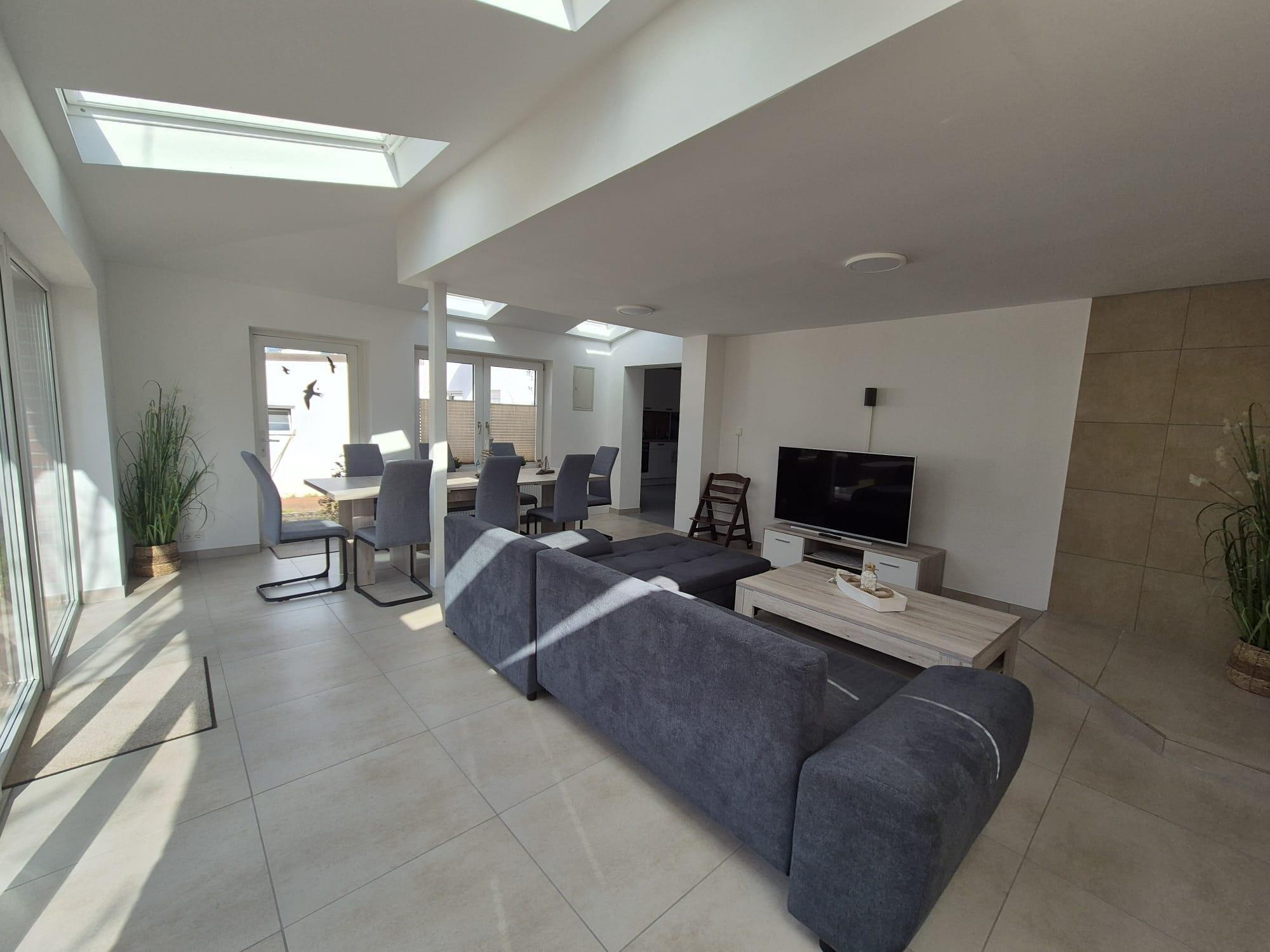 Wir bieten Ihnen eine ruhige, helle Nichtraucher-Wohnung mit ca. 130 qm für bis zu 6 Personen + Baby in einem ruhigen Wohngebiet umgeben von Einfamilienhäusern. die Wohnung leigt im Erdgeschoß eines 2-Familienhauses.
